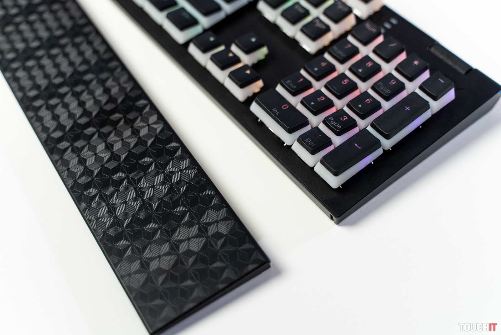 Súčasťou výbavy je aj magnetická podložka pre ruky, ktorá prispieva k zvýšenému komfortu. V prípade potreby je ju však možné veľmi jednoducho oddeliť alebo pripojiť späť. Opierka rúk drží na svojom mieste pevne, čiže určite nebudete počas jej používania zápasiť s problémom, že by sa neustále oddeľovala od klávesnice. Hlavnou výhodou tohto riešenia je aj možnosť umiestnenia v ľubovolnej vzdialenosti od klávesnice.