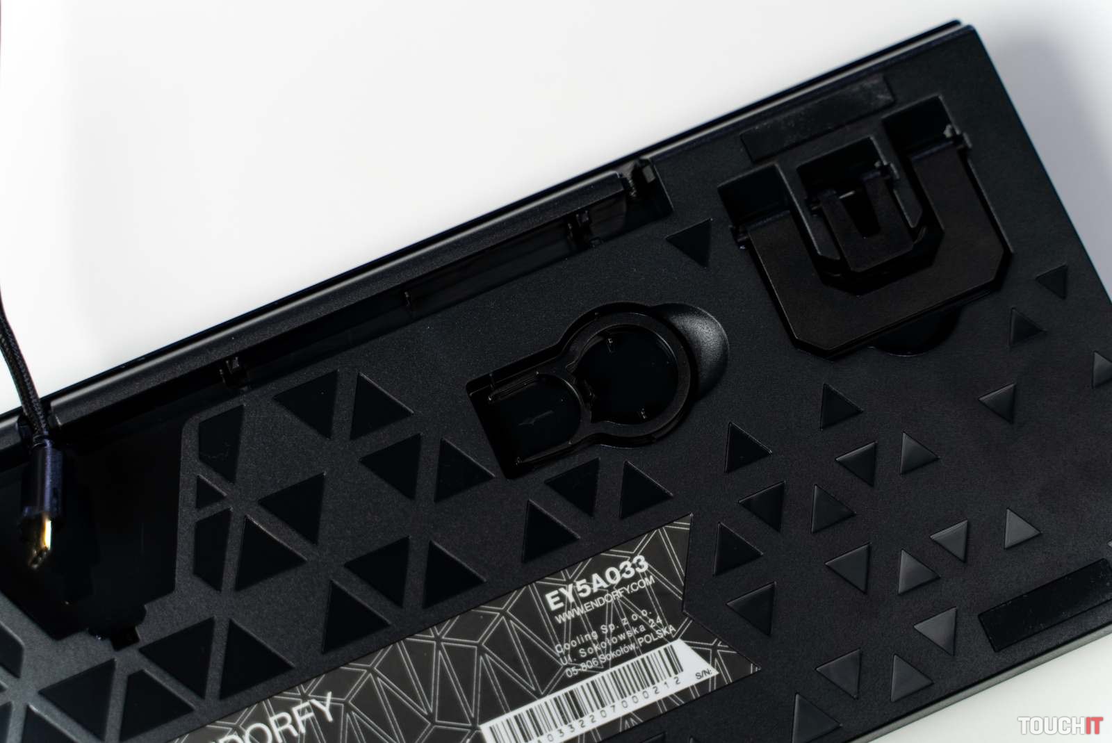 V spodnej časti Omnis Pudding Red sú protišmykové podložky. Môžem potvrdiť, že ani pri intenzívnom používaní sa klávesnica zo svojho miesta ani nepohla. Je však potrebné udržiavať tieto gumené podložky čisté, inak sa na ne nanesie prach a nečistoty, po čom sa klávesnica začne šmýkať. Pre ešte pohodlnejšie nastavenie sklonu sa v spodnej časti nachádzajú aj dvojpolohové nožičky. Používateľ má k dispozícii celkovo tri výšky nastavenia sklonu – základnú „nulovú„, prvú a druhú. Pri písaní som zvykol používať základné nastavenie sklonu, počas hrania hier mi viac vyhovoval najvyšší stupeň. Ku klávesnici je dodávaný dlhý 1,8 metrový pozlátený USB – USB-C kábel, ktorý je pletený, čiže je aj mimoriadne odolný. Kábel je možné z klávesnice viesť cez organizátor až tromi smermi.
