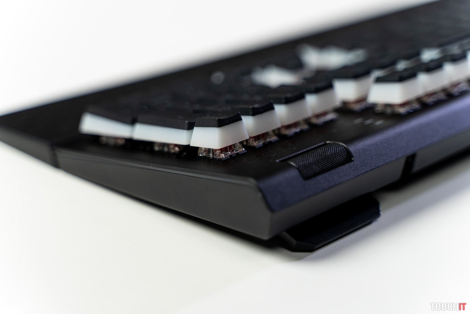Mechanické klávesnice je potrebné vždy vyberať na základe použitých spínačov. Slovo Red v názve prezrádza, že nami testovaná verzia má vo svojej výbave najrýchlejšie lineárne spínače Kailh Red, čiže stlačenie klávesov je okamžite zaznamenané. Keďže sú aj odolné, ich životnosť sa odhaduje až na 50 miliónov kliknutí. Súčasťou klávesnice je aj funkcia N-Key Rollover, čo znamená, že každé kliknutie, dokonca aj viacnásobné, je zaznamenané a funkcia vykonaná. Pre čo najistejšie používanie je vrchný profil klávesov výrazne tvarovaný. To počas hrania hier umožňuje ešte lepšie vnímať jednotlivé klávesy a prsty udržať presne tam, kde majú byť.