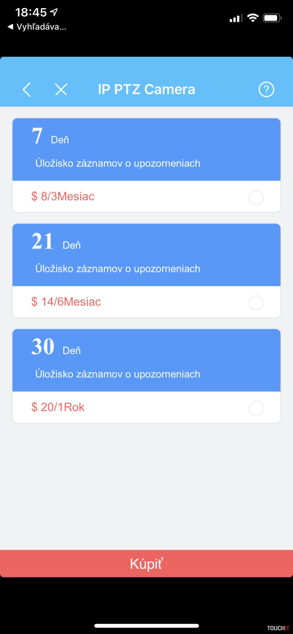Ceny sú udávané iba v dolároch, čo nie je problémom a platbu je možné vykonať priamo z aplikácie cez PayPal. Nahrávanie na cloud je pohodlnejšie a jednotlivé nahrávky sa zobrazia rýchlejšie, ako keby ste ich hľadali v zázname pamäťovej karty. Záznam z kamery sa nikdy nenahráva kontinuálne, ale iba v čase, keď kamera zaregistruje pohyb. Dĺžka nahrávky záleží od nastavenia, môže to byť od 15 sekúnd, do 5 minút. O žiaden dej však neprídete, kamera síce nahráva záznam iba na podnet pohybu, ale kontinuálne sleduje scénu, pričom je časť záznamu v „medzipamäti“ a keď zaregistruje pohyb, tak sa v zázname zobrazí aj kúsok deja, ktorý sa odohral pred samotným pohybom.