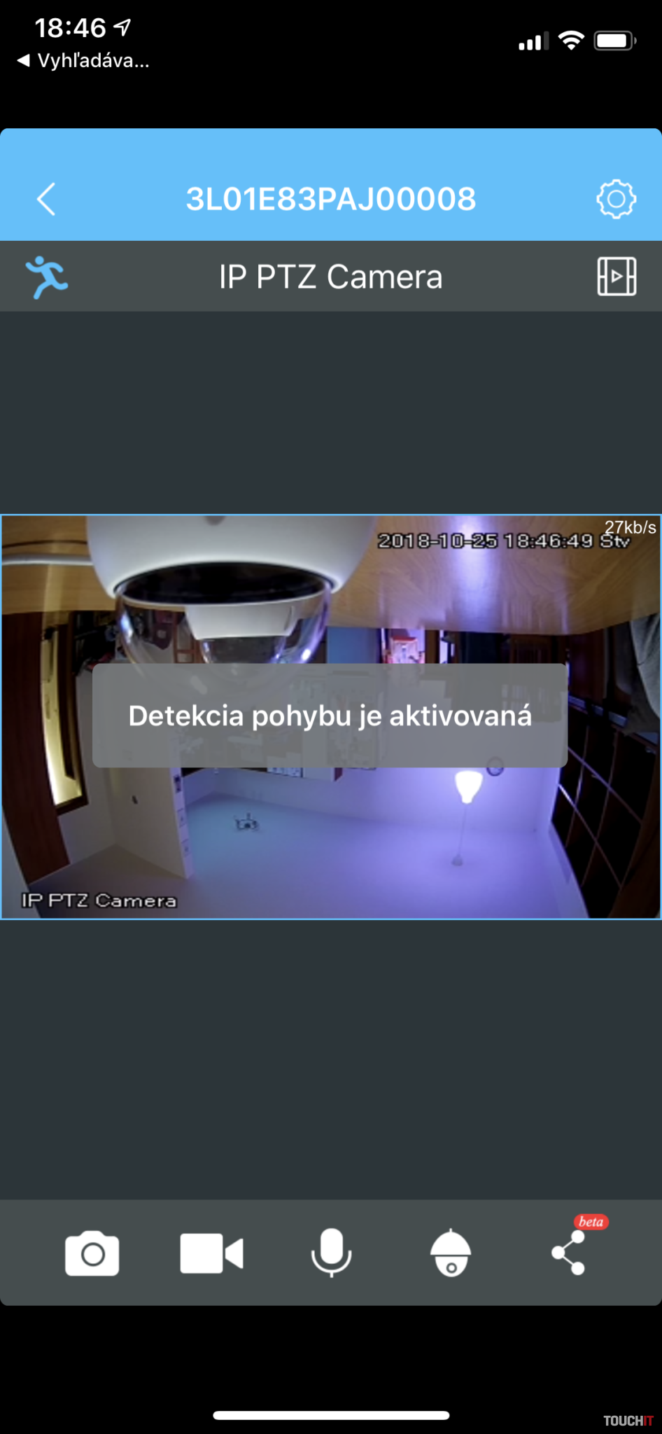 V nastaveniach si môžete prispôsobiť rýchlosť otáčania a priamo na ploche máte na výber kvalitu živého obrazu – nízka/vysoká (SD/HD). V prípade tejto kamery nás asi najviac mrzí absencia nastavenia rôznych pozícií („tzv. presety“), ktoré by kamera v pravidelných intervaloch sledovala. Práve toto je veľkou výhodou otočných kamier. Pochváliť však musíme rýchle reakcie otáčania, bez akýchkoľvek váhaní. Kvalita obrazu je veľmi dobrá, ale medzi touto a vyššie uvedenými kamerami nie je priepastný rozdiel v kvalite videa. Odporúčaná MOC: 199,90 Eura Jednoduchý kamerový systém je relatívne výhodný, ale má aj svoje neduhy Počas testu sme natrafili na určité nedokonalosti. Aplikácia občas blbne a je potrebné sa do účtu bezdôvodne prihlasovať znovu. Zriedka sa môže stať aj to, že je nutné opakovane pridať kameru, ktorú vám nevie aplikácia načítať, záznam sa však nahráva. Taktiež nie vždy, resp. nie ihneď načíta aplikácia všetky kamery. Výčitku máme aj k nemožnosti zobrazenia náhľadu zo všetkých kamier na jednej ploche. Tá možnosť tu je, ale natívne nie je funkčná. Kamery do testu zapožičala spoločnosť: ANTIK Telekom Prečítajte si aj: https://touchit.sk/profesionalny-kamerovy-system-wisenet-samsung/126159