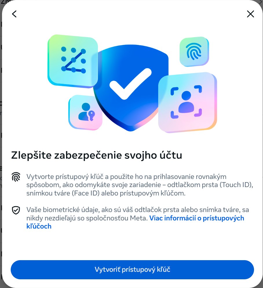 Na lepšie zabezpečenie Facebook vyzýva, aby ste si aktivovali ochranu cez tzv. prístupové kľúče.