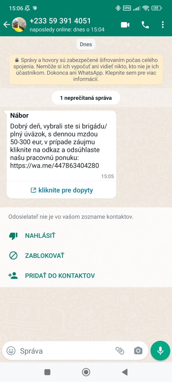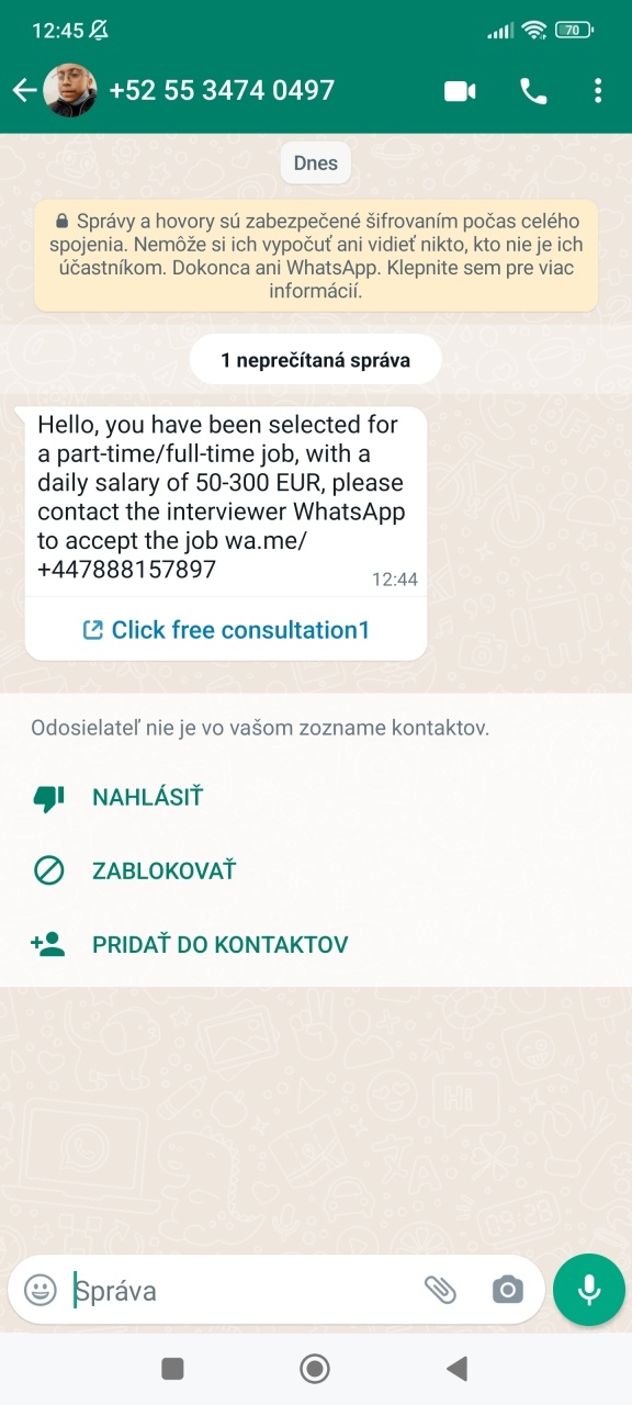 Falošné pracovné ponuky na WhatsAppe
