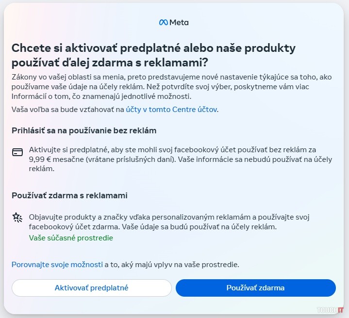 Používatelia dostanú na výber, jedna z možností je, že Facebook budú môcť stále používať bezplatne.