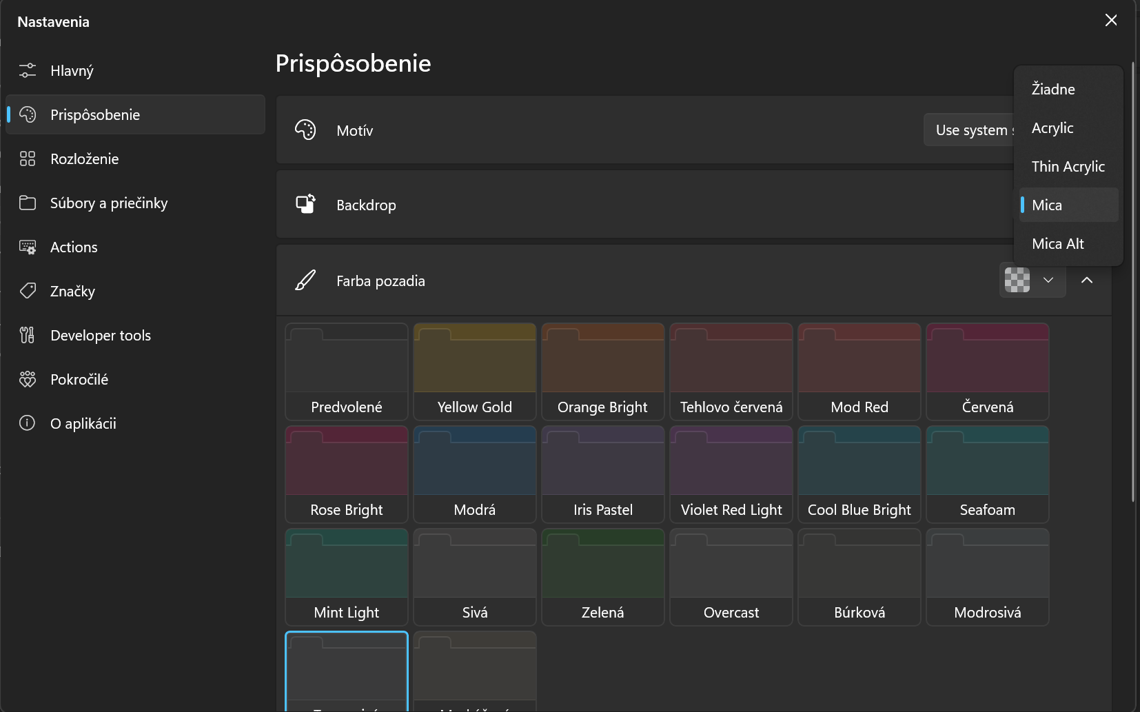 Samostatnú časť aplikácie tvorí dizajnové prispôsobenie. Okrem predvolených štýlov v duchu Windows 11 si používatelia môžu zvoliť aj vlastné farebné ladenie aplikácie. Upraviť sa dá rozloženie adresárov podľa preddefinovaných štýlov.