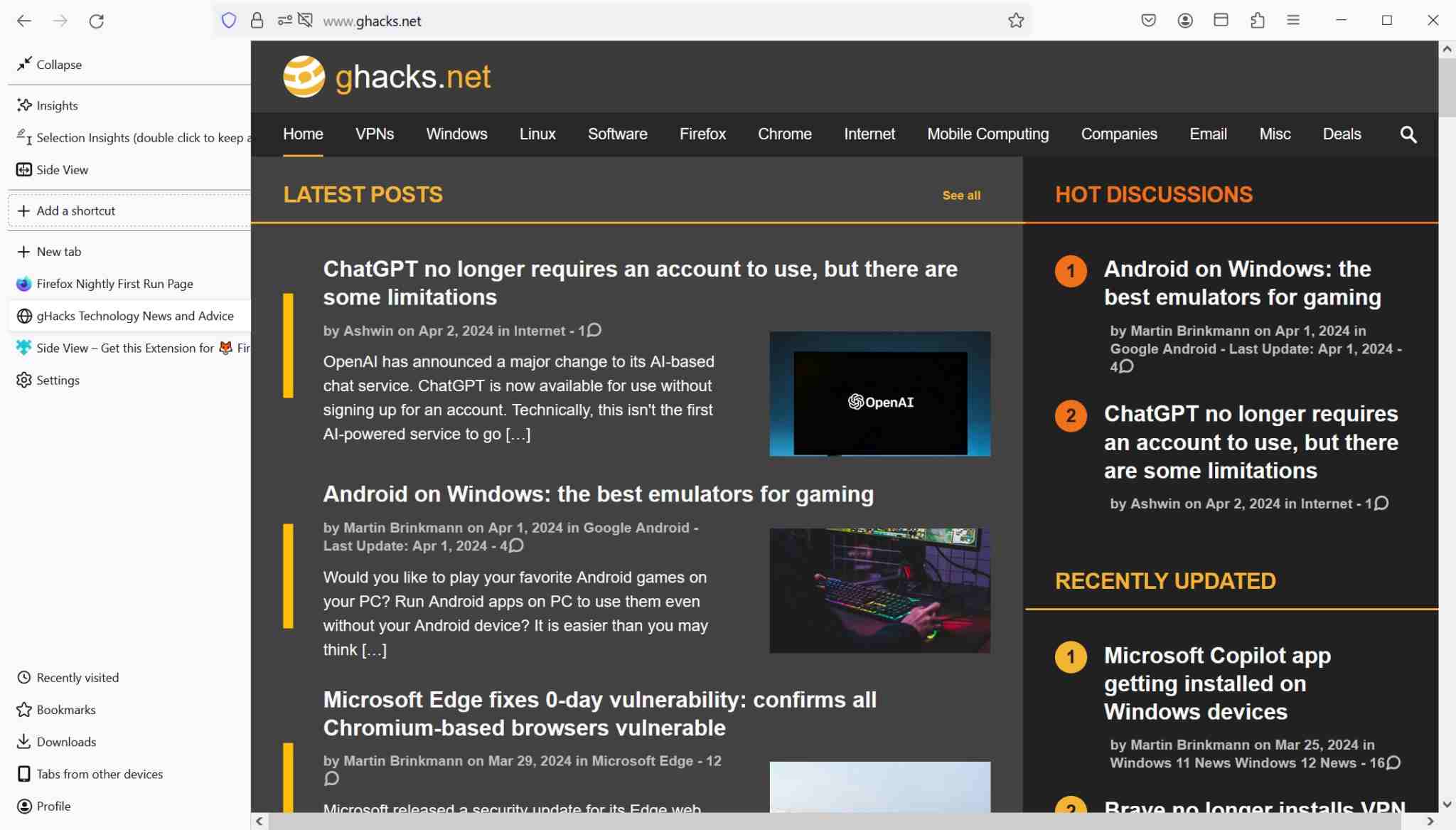O tejto možnosti sa hovorí už od roku 2022 a treba dodať, že nie vždy ide o vyrovnané možnosti hoci vychádzajú z jedného základu. Najďalej je v tomto smere prehliadač Vivaldi. Firefox však bude v tomto rozložení podporovať Drag&Drop ako sme to videli aj inde. Štandardné zobrazenie je len cez ikony, je však možné panel rozbaliť a vidieť aj popisy.