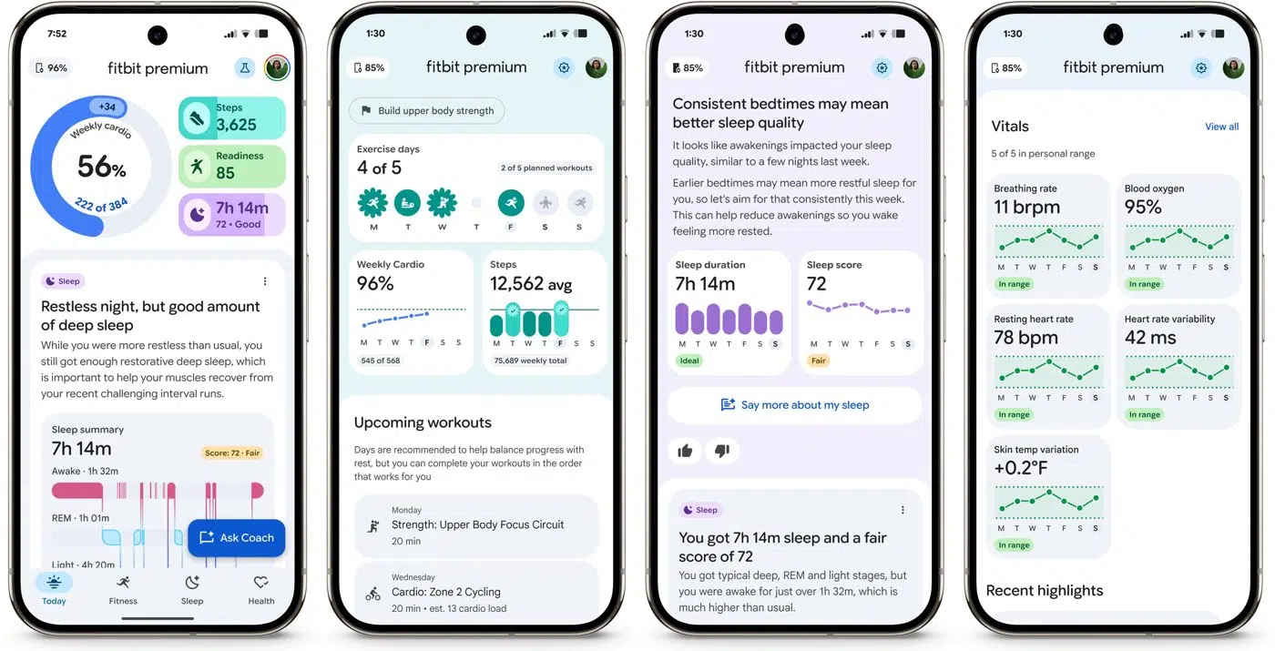 Fitbit tréner funguje ako personalizovaný sprievodca, ktorý kombinuje úlohy fitnes trénera, spánkového poradcu a zdravotného asistenta. Systém pracuje s vašimi individuálnymi cieľmi a dátami, vďaka čomu dokáže pripravovať odporúčania na mieru a reagovať na aktuálnu situáciu, napríklad únavu alebo zmenu denného režimu. Fitbit zároveň integruje do tejto funkcie aj metriku VO2Max (predtým sa označovala ako Cardio Fitness Score), čo umožňuje lepšie sledovanie kardiovaskulárnej kondície v kontexte celkového tréningového plánu.