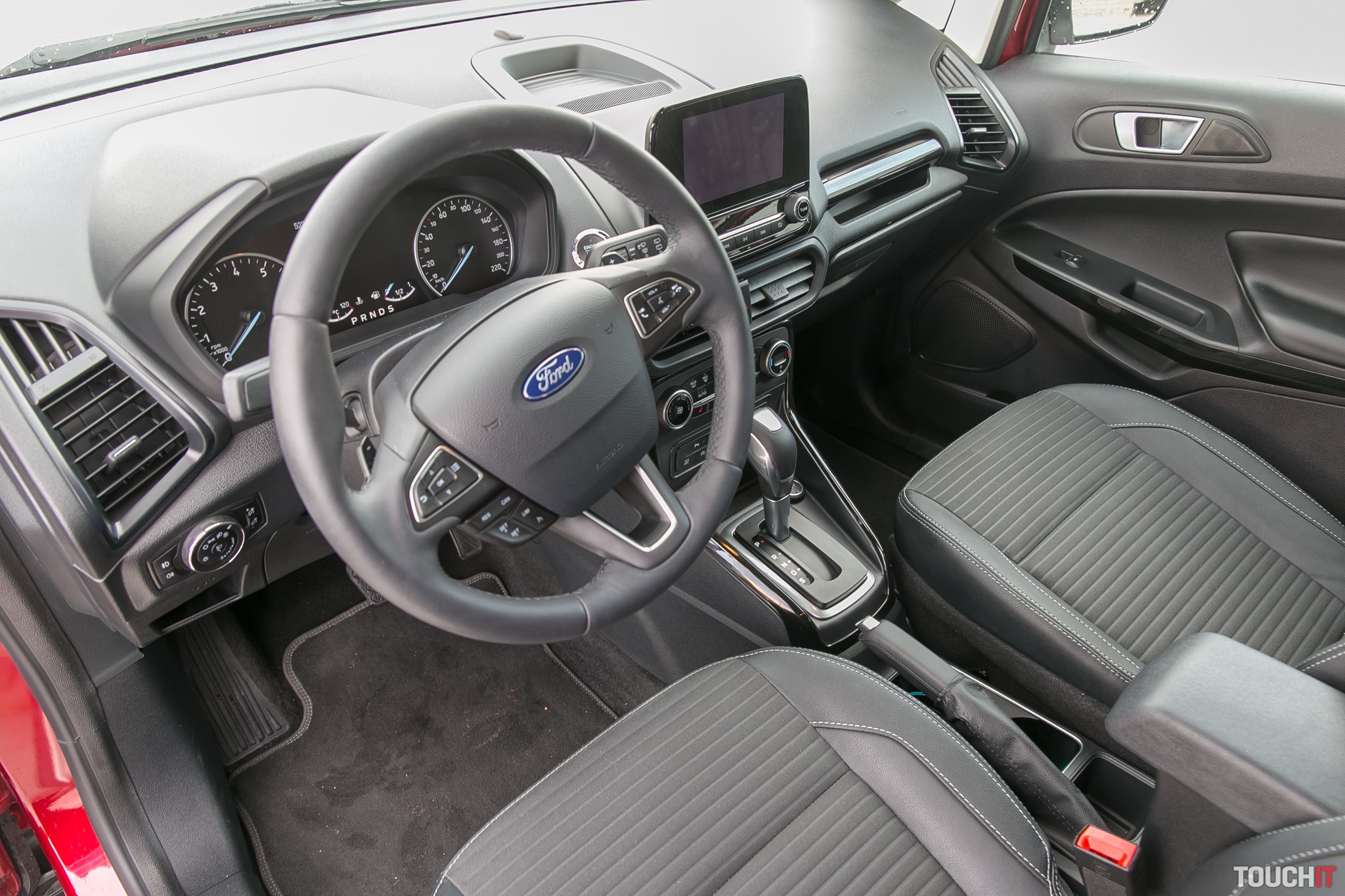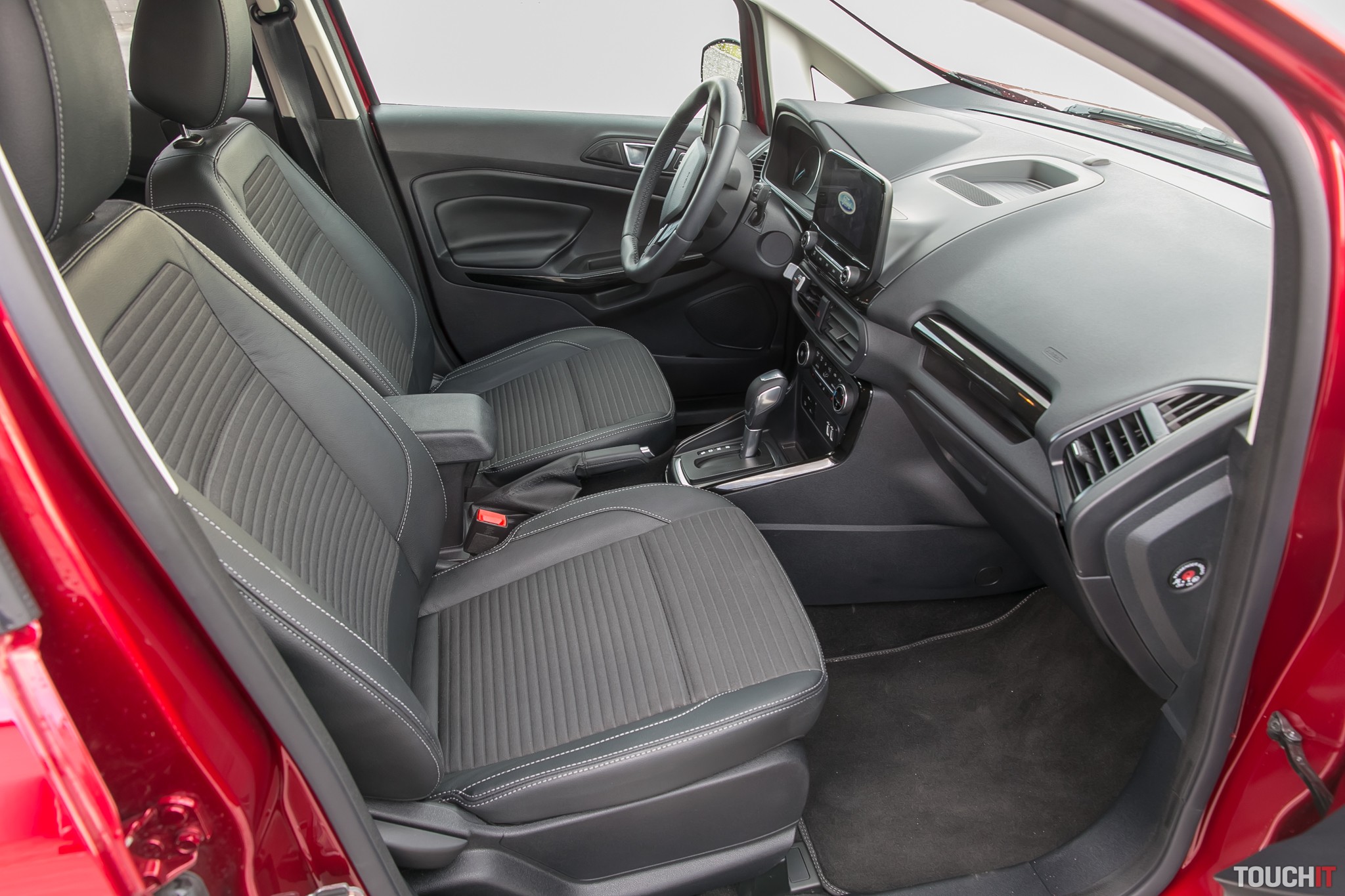 FORD EcoSport zaujme svojou hlavne ľudovou cenou, spolu s bonusom začína jeho cena už na 14 990 Eur. Pritom EcoSport v sebe naozaj spája prvky ekologickej i športovej jazdy, takto má aj nastavené režimy automatickej 6-stupňovej prevodovky. Vyzerá ako SUV a v červenej farbe RubyRed pôsobilo toto auto veľmi dobre. Testovaná verzia Platinum stojí 20 480 eur. Na auto je navyše poskytovaná 5-ročná záruka alebo do 120 000 km (čo príde skôr). DOPLNENÉ 18. júla 2018: Podstatná informácia k cene je v tom, že k tomuto vozidlu sa poskytuje 5-ročný servis zadarmo, čo je na túto triedu vozidla celkom unikátne. Na otázky čitateľov o otvorení kufra uvádzame, že zadné dvete sa dajú otvoriť aj do polovice a vtedy sa dá manipulovať s vecami uloženými v kufri. Znamená to, že veci z auta vyberiete aj vtedy, ak zaparkujete pomerne zadnou časťou tesne k stene, napr. v podzemnej garáži. Navyše, pri sklopení zadných sedadiel sa dá zdvihnúť adaptívna časť podlahy kufre tak, aby vznika úplne rovná plocha. To všetko sú vlastnosti, ktoré zvyšujú úžitkovú hodnotu tohto vozidla. Koniec doplnenej časti