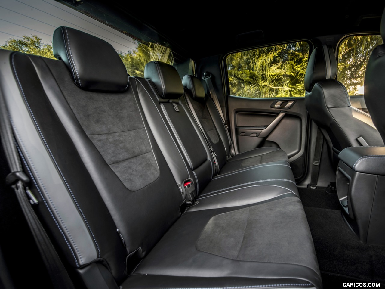 Ford Ranger RAPTORTak vidíte, aj takýto nemilosrdný Sparťan ponúka všetky výdobytky modernej doby a dokonca má celý interiér precízne spracovaný. Použité materiály sú na pohľad i dotyk veľmi dobré. Ešte sa pozrime do druhého radu, kde je miesta pomenej, no stále dosť na to, aby sa tu pohodlne odviezli dve dospelé osoby priemerného vzrastu alebo 3 deti. Ak využívate autosedačky, tak dve sem dáte s prehľadom, ISOfix je prítomný a nespratných súrodencov môžete oddeliť lakťovou opierkou.