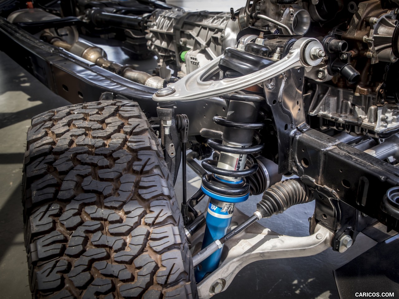 Poďme na ďalšie odlišnosti: azda jedna z tých najdôležitejších sa nazýva podvozok, ktorý je komplexne prekopaný a inak konštruovaný ako v klasike. Jasné, stále ide o rámovú konštrukciu, ktorá sa vyznačuje extra vysokou pevnosťou (vysoko pevnostná legovaná oceľ). Druhou častou je športové pruženie FOX PRO + odlišné zavesenie kolies, ktoré je dokonale nastavené tak, aby boli bežné cesty pohodlné, no v teréne to vybalí na 100% a ponúkne rokmi overené schopnosti + perfektnú kontrolu na autom – aj počas jazdy v teréne vyššími rýchlosťami.