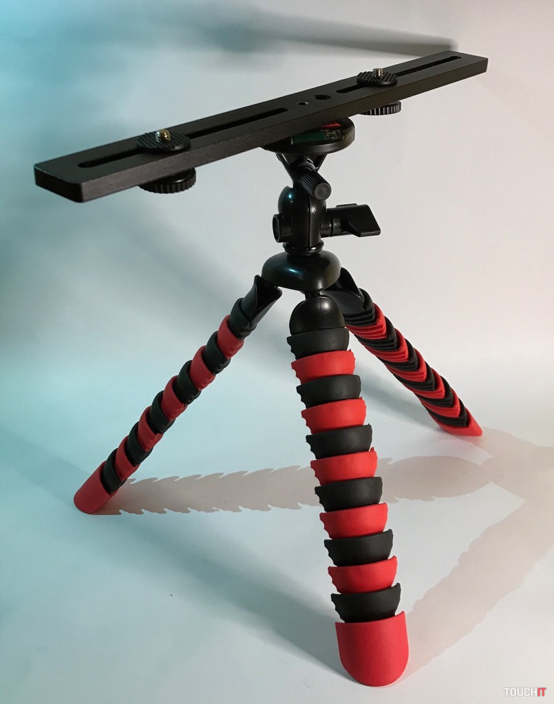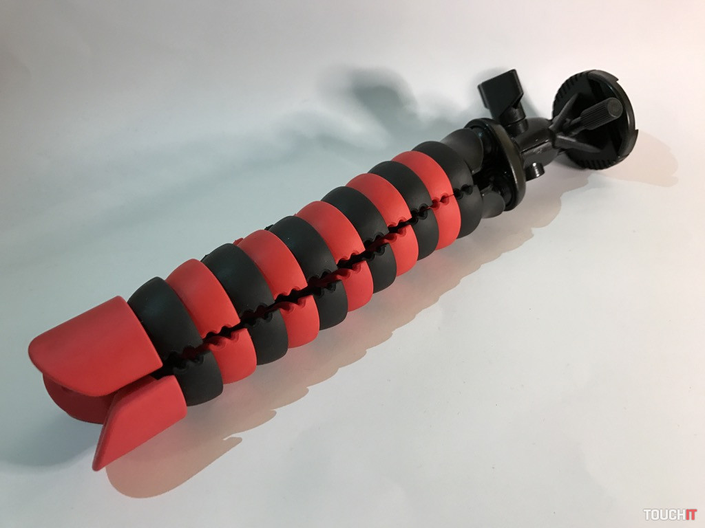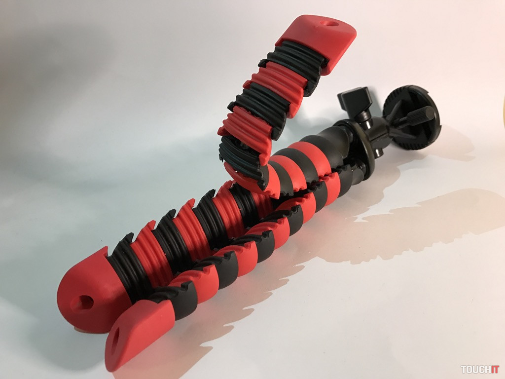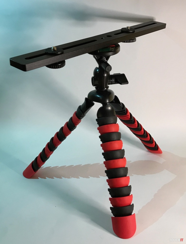 Jednoduchý tripod s rôznymi možnosťami úchopu a flexibilnými nohami. Môže byť „klasickým“ statívom alebo ho môžete omotať o konár stromu a pod., je plne prispôsobiteľný. Siahli sme po ňom aj z toho dôvodu, že max. udávaná nosnosť je 3 Kg. Ak to bude potrebné, znesie aj bežnú zrkadlovku bez toho, aby sa „rozsypal“. Pri takýchto druhoch (s flexibilnými nohami) statívov je ten problém, že ak nie je dostatočne odolný, tak sa po zaťažení rozídu nohy. Vyhotovenie zovňajšku je celoplastové, čo nie je najideálnejšie. Spokojnejší by sme boli, ak by bola min. časť s kĺbom a aretáciou kovová.