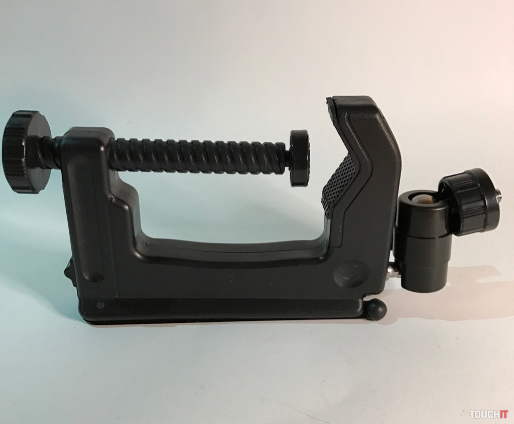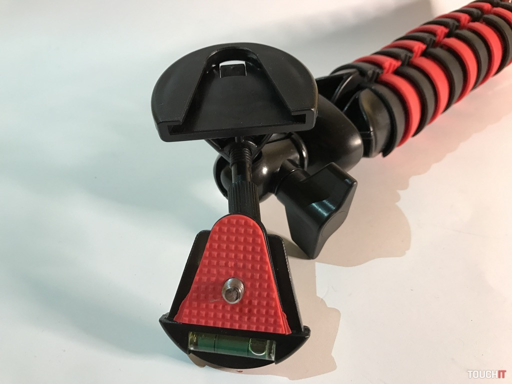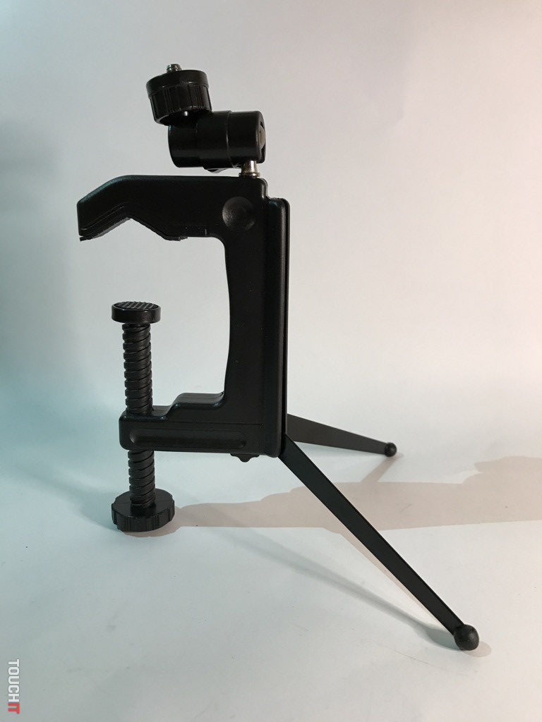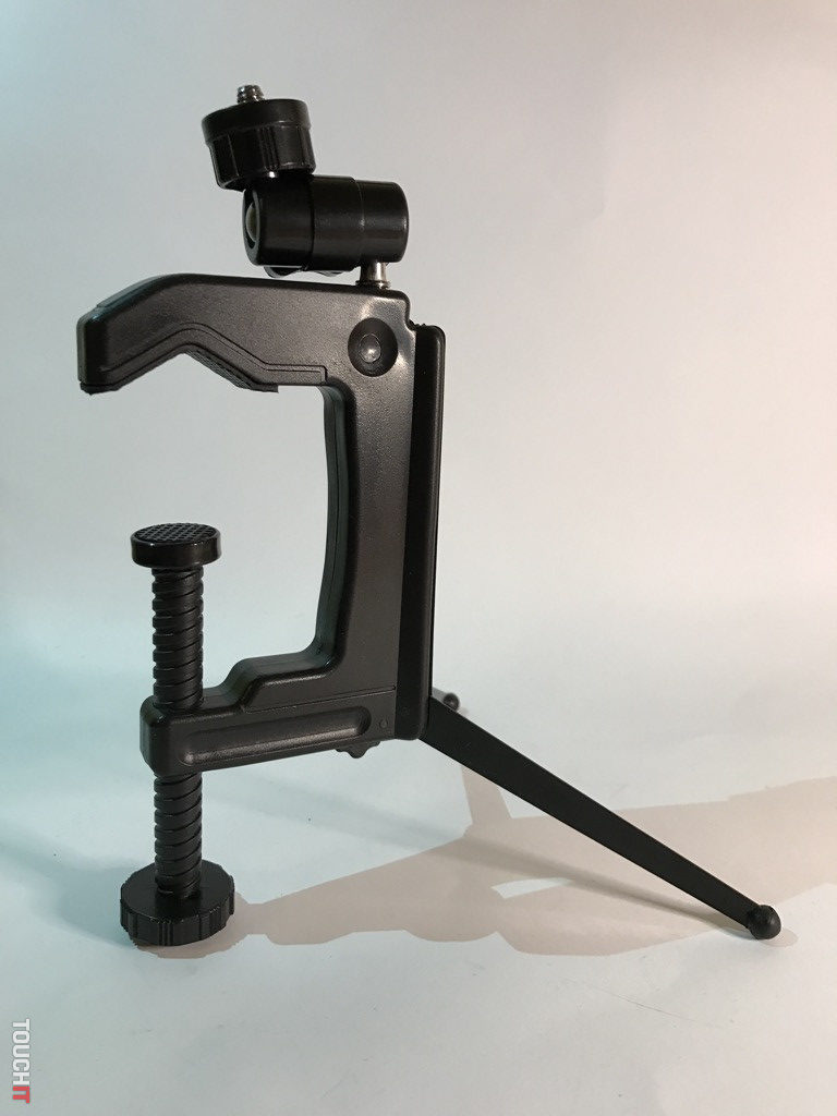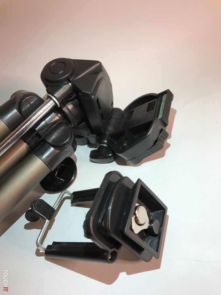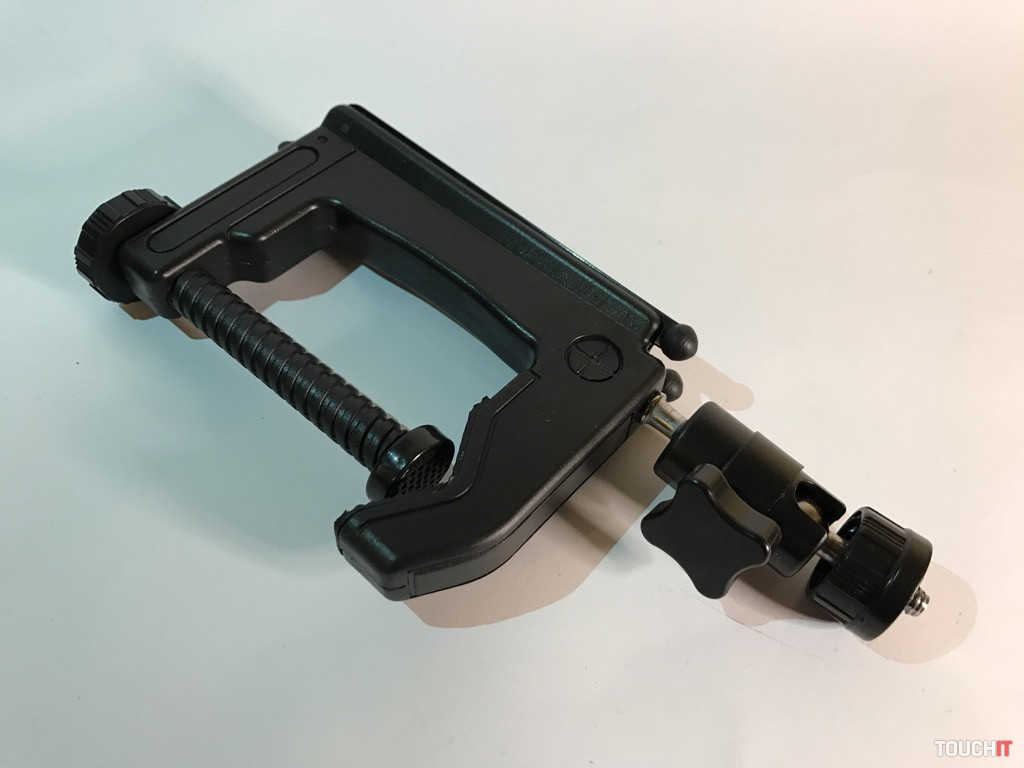 Jednoducho hybrid, ktorý si ihneď získal našu pozornosť. Toľko spôsobov použitia a konfigurácie, ako má tento produkt, sa len tak ľahko nevidí. Zariadenie je z odolného plastu, pričom nožičky a kĺby s aretáciou sú kovové. Výhodou je skladnosť, dve kovové nožičky sú sklápateľné a treťou nohou je veľká plastová skrutka, ktorá má okrem funkcie nohy aj aretačnú funkciu. A to vtedy, ak chcete statív prichytiť o trubku, stôl a pod. kovové nohy sú po otvorení zafixované a poistené, pri sklápaní je nutné odistiť zámok.