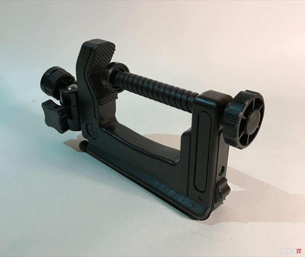 Tých nie je nikdy dosť a oplatí sa mať v zásobe minimálne jeden náhradný, ak by sa ten hlavný poškodil. V tomto prípade ide o klasické držiaky v kombinácii kov a plast, ktoré pojmú zariadenia do šírky až 9 cm. Čiže ani iPhone 7 Plus s puzdrom a pod. nebude žiadny problém. Držiak má v spodnej časti klasický 1/4“ závit.