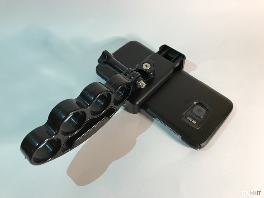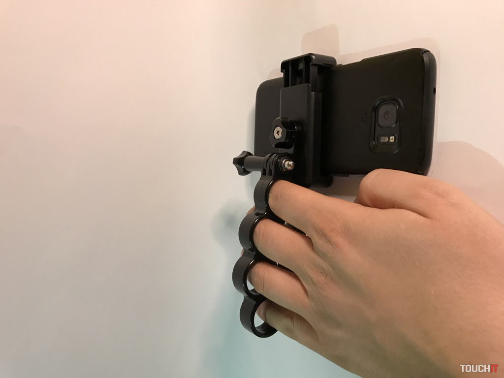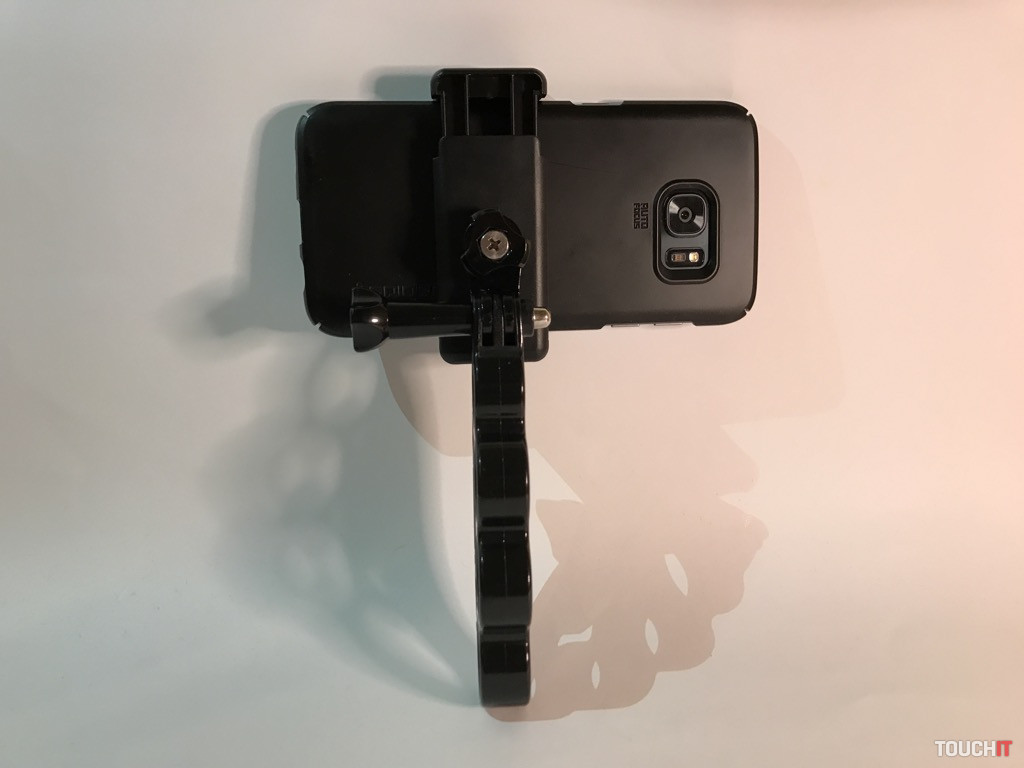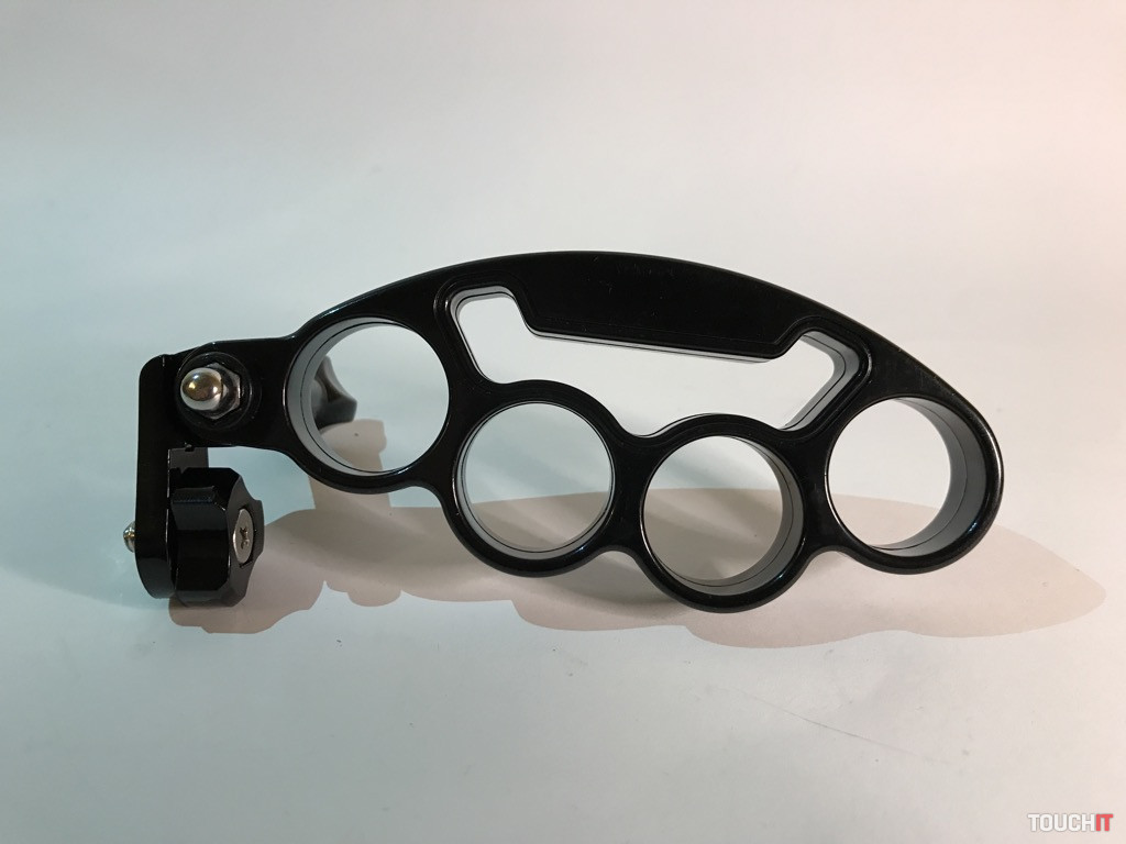 Atypický držiak, miestami by sme ho mohli nazvať provokačným, ale jeho účel je jasný. Žiadne násilie, ale bezpečné uchopenie a eliminácia vytrhnutia zariadenia, resp. držiaku z rúk. Boxer sa veľmi dobre drží, je vyrobený z pevného plastu a jeho vrchná časť tvorí úchyt pre ďalšie príslušenstvo. My sme použili adaptér s 1/4“ skrutkou, kde umiestňujeme držiak pre smartfón.
