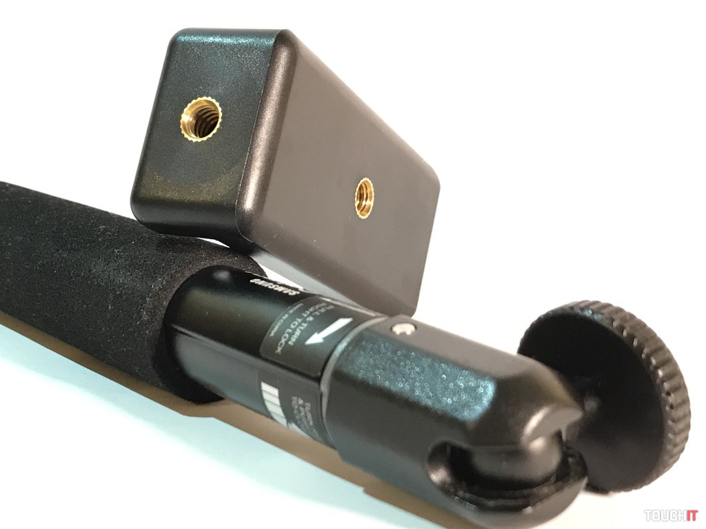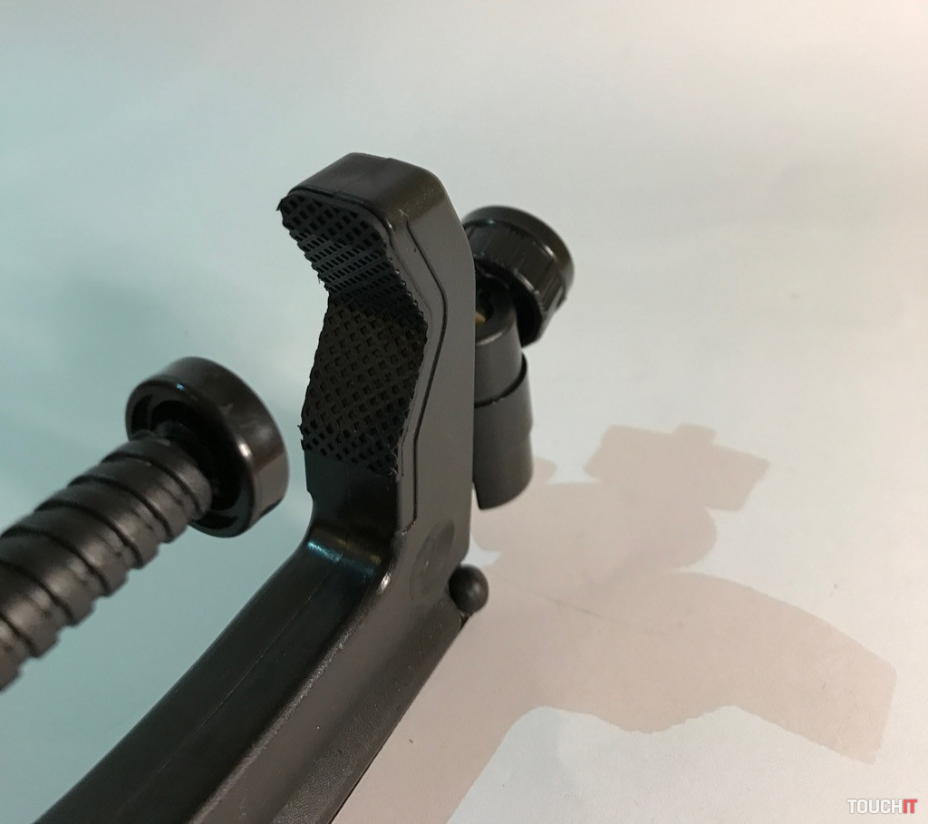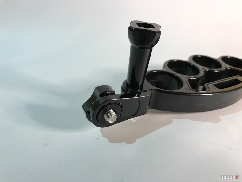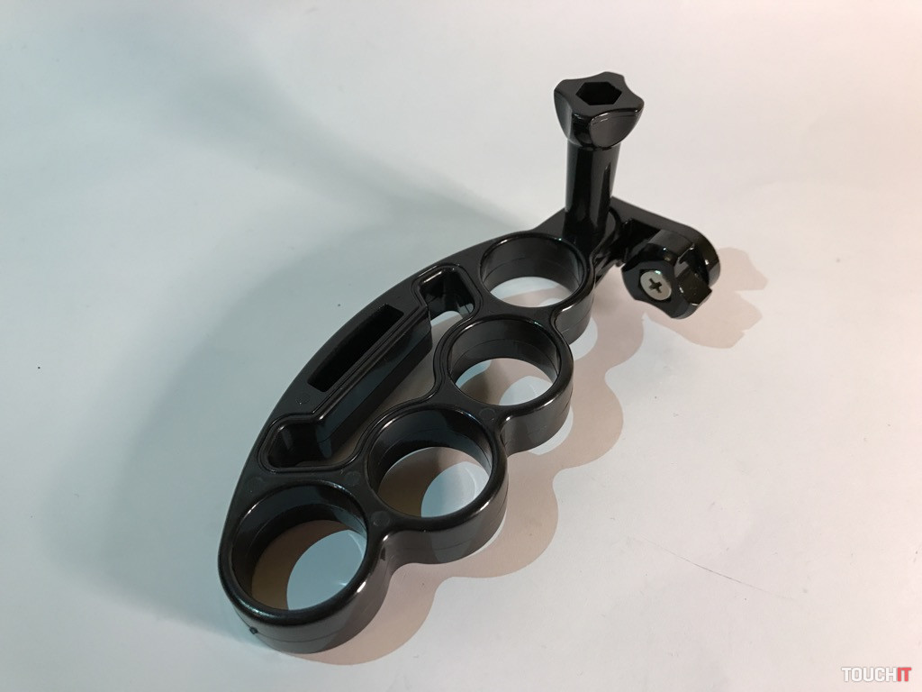 Atypický držiak, miestami by sme ho mohli nazvať provokačným, ale jeho účel je jasný. Žiadne násilie, ale bezpečné uchopenie a eliminácia vytrhnutia zariadenia, resp. držiaku z rúk. Boxer sa veľmi dobre drží, je vyrobený z pevného plastu a jeho vrchná časť tvorí úchyt pre ďalšie príslušenstvo. My sme použili adaptér s 1/4“ skrutkou, kde umiestňujeme držiak pre smartfón.