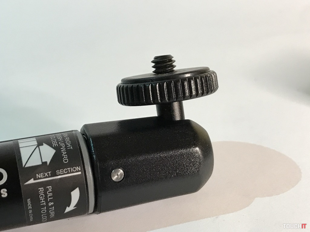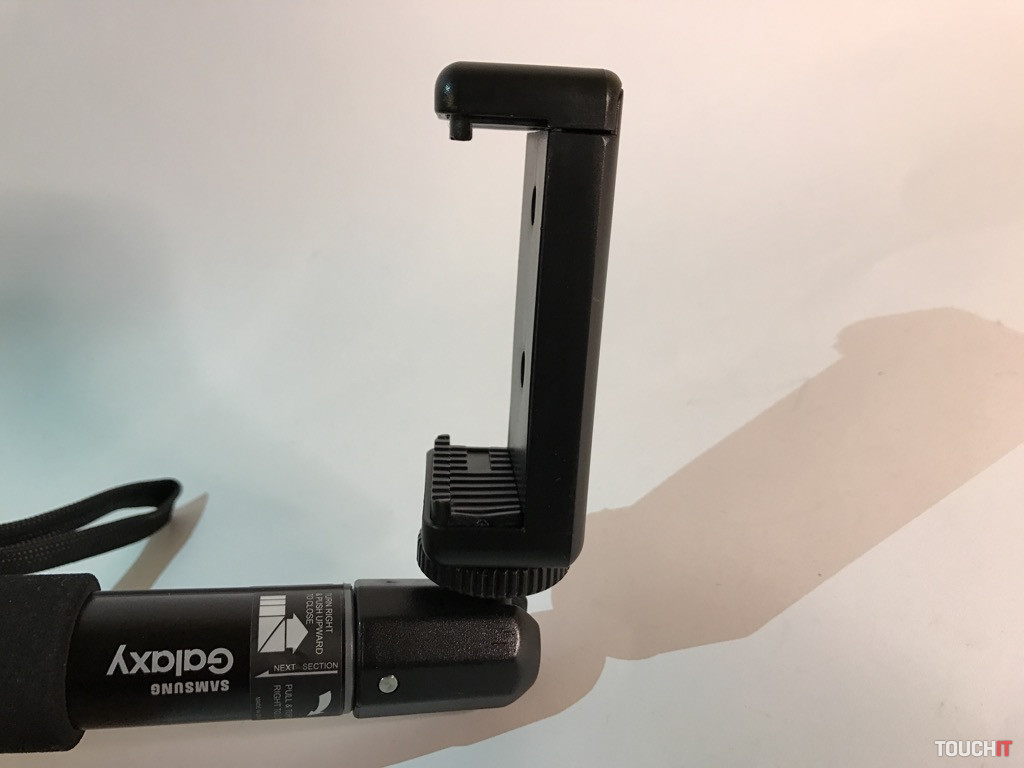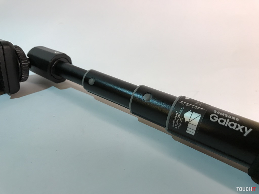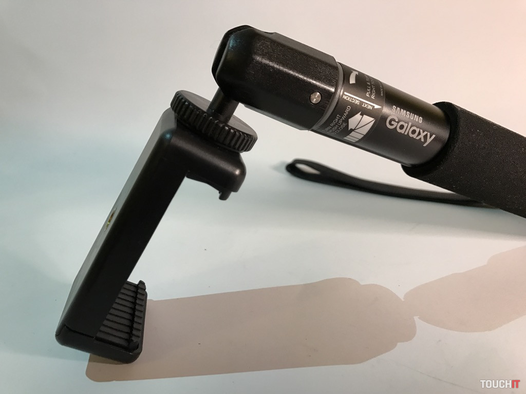 Samsung nevyrába len smartfóny, ale aj zaujímavé príslušenstvo k nim. Selfie tyč z produkcie tohto výrobcu sme si obľúbili kvôli jej jednoduchosti. Nemá Bluetooth ovládanie a je zhotovená z plastu a hliníka. Tyč je odolná a disponuje hliníkovou hlavou na kĺbe, s ideálne veľkou doštičkou, ktorá je ukončená 1/4“ skrutkou pre rôzne príslušenstvo. Podstatnou súčasťou je 1/4“ závit v spodnej časti rukoväte, čo umožňuje tyč kombinovať so statívom a iným vyššie uvedeným príslušenstvom (v našom prípade). Doplnkom je šnúrka na zápästie v balení. Tyč je zložená zo štyroch segmentov, ktoré sa aretujú otočným systémom. Ten je, subjektívne, najideálnejší. Max. dĺžka je 482 mm / min. 182 mm s hmotnosťou 80 gramov.