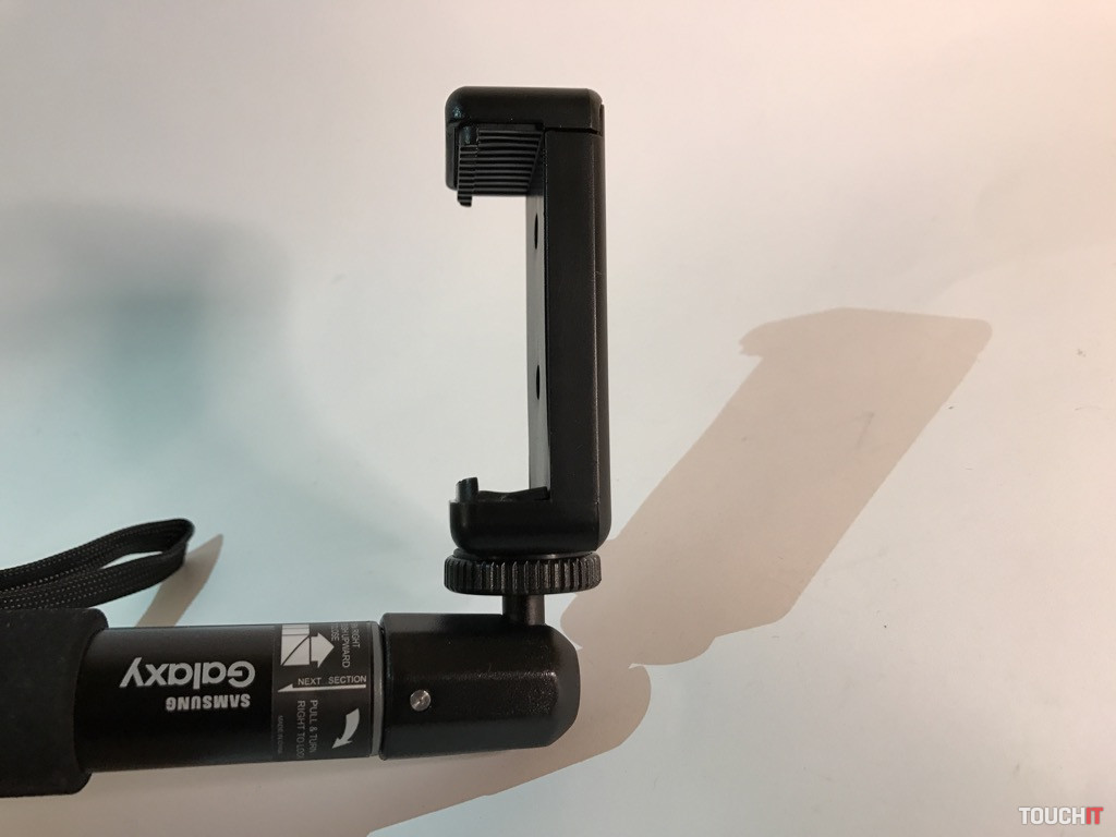 Okrem samotnej selfie tyče je v balení aj plastový držiak pre smartfóny. Ten má dve možnosti uchytenia na 1/4“ skrutku – zospodu a zozadu. Ktorou stranou držiak namontujete je jedno, pričom stále zostáva jeden 1/4“ závit voľný. To je vhodné nato, ak chcete k držiaku pridať nejaké iné príslušenstvo – svetlo, väčší mikrofón a pod. Možností je veľa, stačí mať štipku technického myslenia. Dodajme, že držiak pojme aj väčšie zariadenia, ako napr. iPhone 7 Plus s puzdrom (max. 87 mm). Cena: 19.90 Všetky produkty, okrem Samsung tyče, mikrofónu a Hama statívu, je možné zakúpiť na elementrix.sk. Samsung tyč je dostupná na: nay.sk, stavív Hama na: agem.sk a mikrofón na gearbest.com