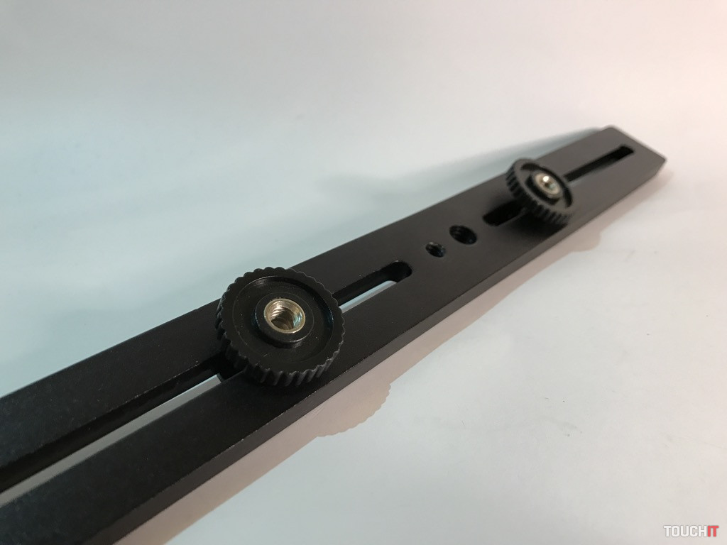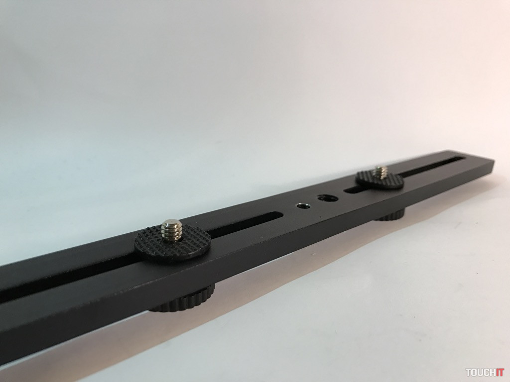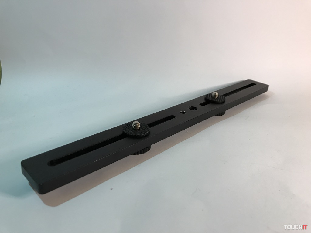 Tento produkt nie je tak celkom na bežné používanie v teréne, resp. na bežné nosenie vo vaku. Ide o jednoduchú pomôcku s dvomi 120 mm dráhami, na ktorých sú dve 1/4“ skrutky pre rôzne príslušenstvo. Výhoda spočíva v tom, že z vrchnej časti je 1/4“ skrutka a v spodnej časti 1/4“ závit.
