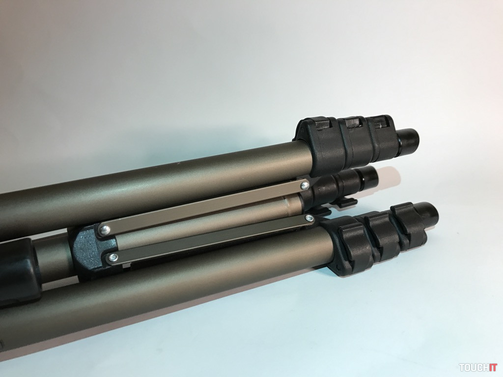 Klasický hliníkový statív, avšak stále kompaktný nato, aby sa zmestil so ruksaku alebo inej príručnej tašky – v zloženom stave má výšku 43 cm. Pre smartfón je tento statív síce menej vhodný, ale aj tak ho používame radi. Statív je klasického zloženia. Hliníkové nohy sú z troch častí, ktoré sa aretujú plastovými sponami a stred je poistený rozťahovacou rozperou.
