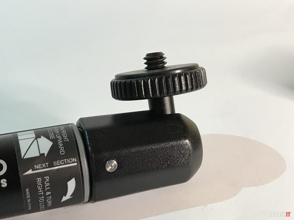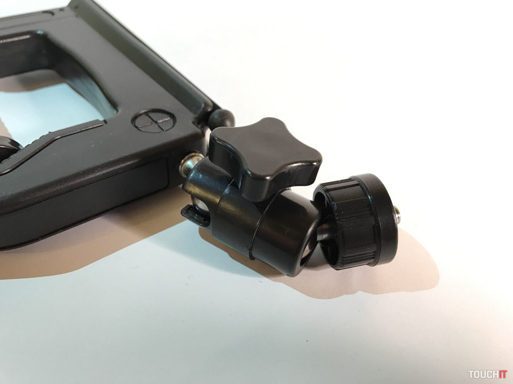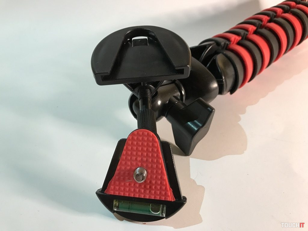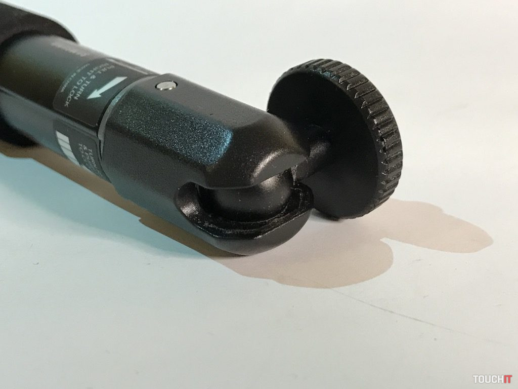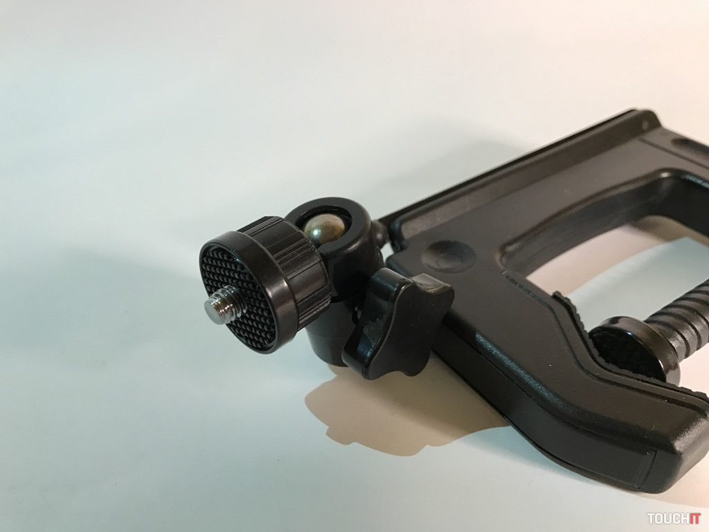 Týmto spôsobom je zabezpečená spoľahlivosť a stabilita zariadenia pri práci, čo je podstatou. Všetky časti, ktorých úlohou je fixovať, majú protišmykovú úpravu. Vo vrchnej časti sú dva kovové kĺby, stredová časť s aretáciou a klasický 1/4“ závit. Zariadenie je dostatočne pevné a stabilné, aj keď sa to na prvý pohľad nemusí zdať. Dá sa použiť mnohými spôsobmi a nakombinovať ho s inými zariadeniami, napokon sa výborne drží aj v ruke.