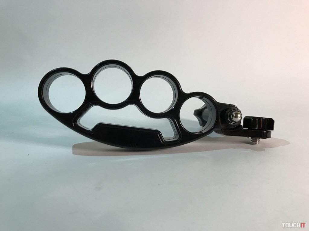 Atypický držiak, miestami by sme ho mohli nazvať provokačným, ale jeho účel je jasný. Žiadne násilie, ale bezpečné uchopenie a eliminácia vytrhnutia zariadenia, resp. držiaku z rúk. Boxer sa veľmi dobre drží, je vyrobený z pevného plastu a jeho vrchná časť tvorí úchyt pre ďalšie príslušenstvo. My sme použili adaptér s 1/4“ skrutkou, kde umiestňujeme držiak pre smartfón.