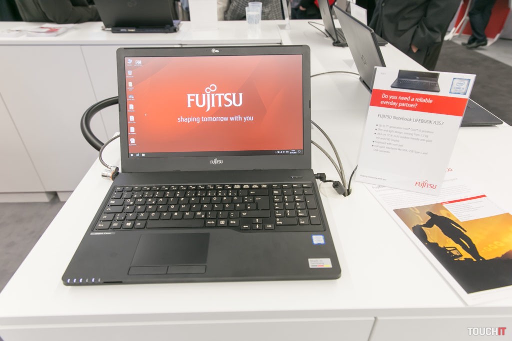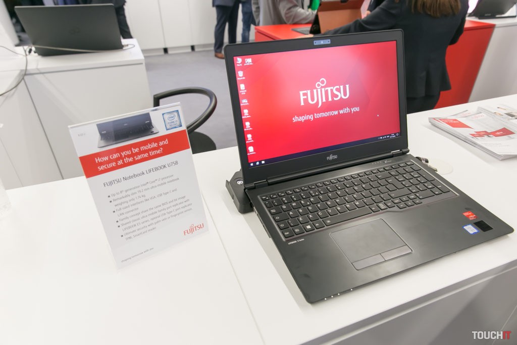 Fujitsu je mimochodom v Nemecku mimoriadne obľúbená značka podnikových zariadení a na zložení návštevníkov to bolo vidieť. Našim hlavným záujmom bolo však demonštračné centrum. Tu sme si našli notebooky, počítače, tablety, displeje a ďalšie príslušenstvo a ideme hneď na to.