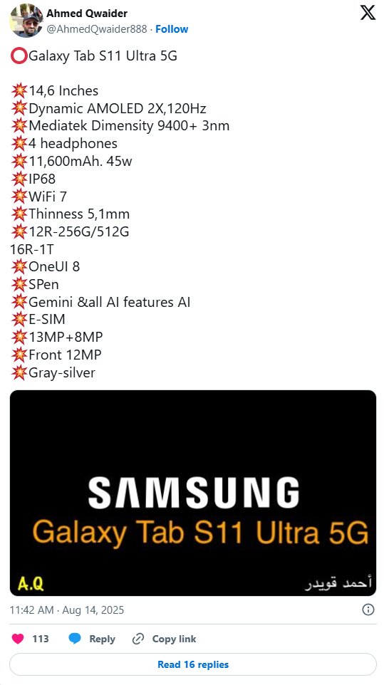 Galaxy Tab S11 Ultra príde s rekordne tenkým telom