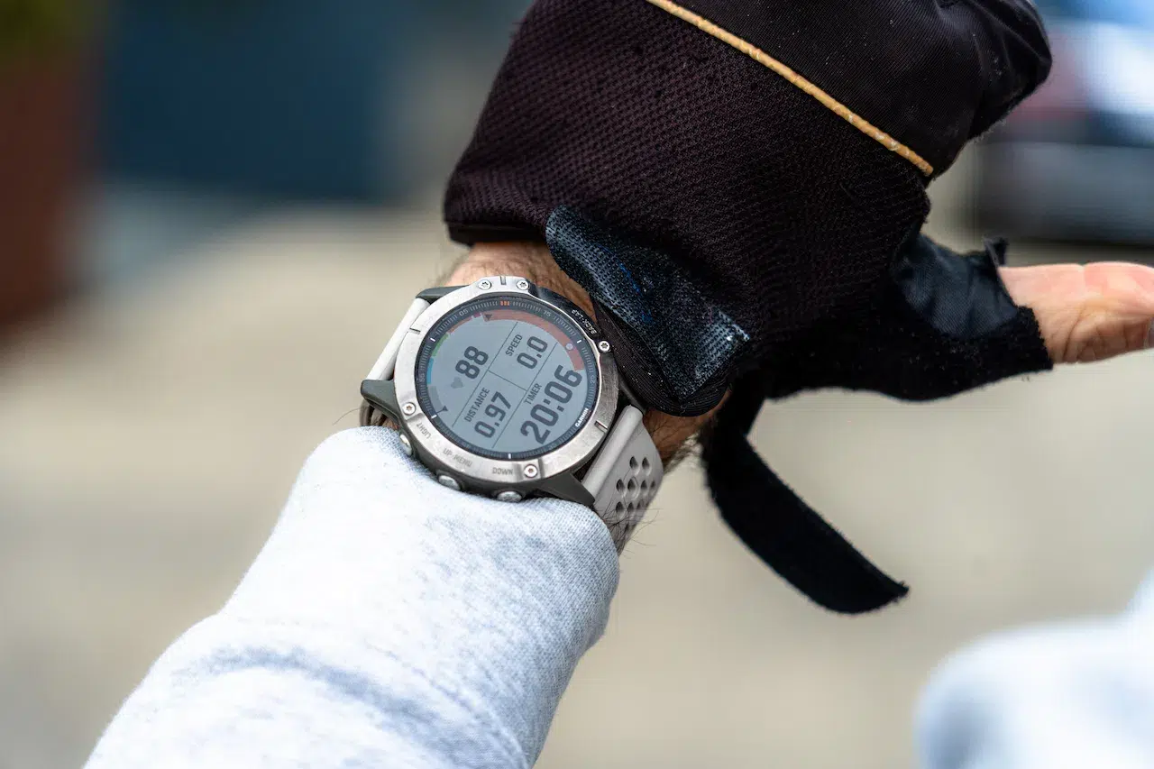 Cykloradar sme skúšali aj s Garmin hodinkami. Tie zobrazujú jednoduchý farebný indikátor rizika, napríklad oranžový alebo červený pásik, a upozorňujú zvukom. Viac sme sa však spoliehali na telefón, kde je lepší prehľad. Novšie Garmin hodinky však dokážu posielať aj hlasové upozornenia.