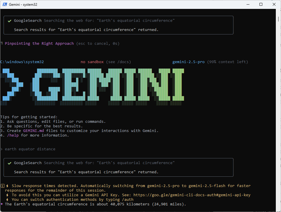 Na opätovné použitie nástroja Gemini v budúcnosti stačí spustiť PowerShell alebo dokonca obyčajný Príkazový riadok v systéme a napísať slovo gemini a potvrdiť Enterom.