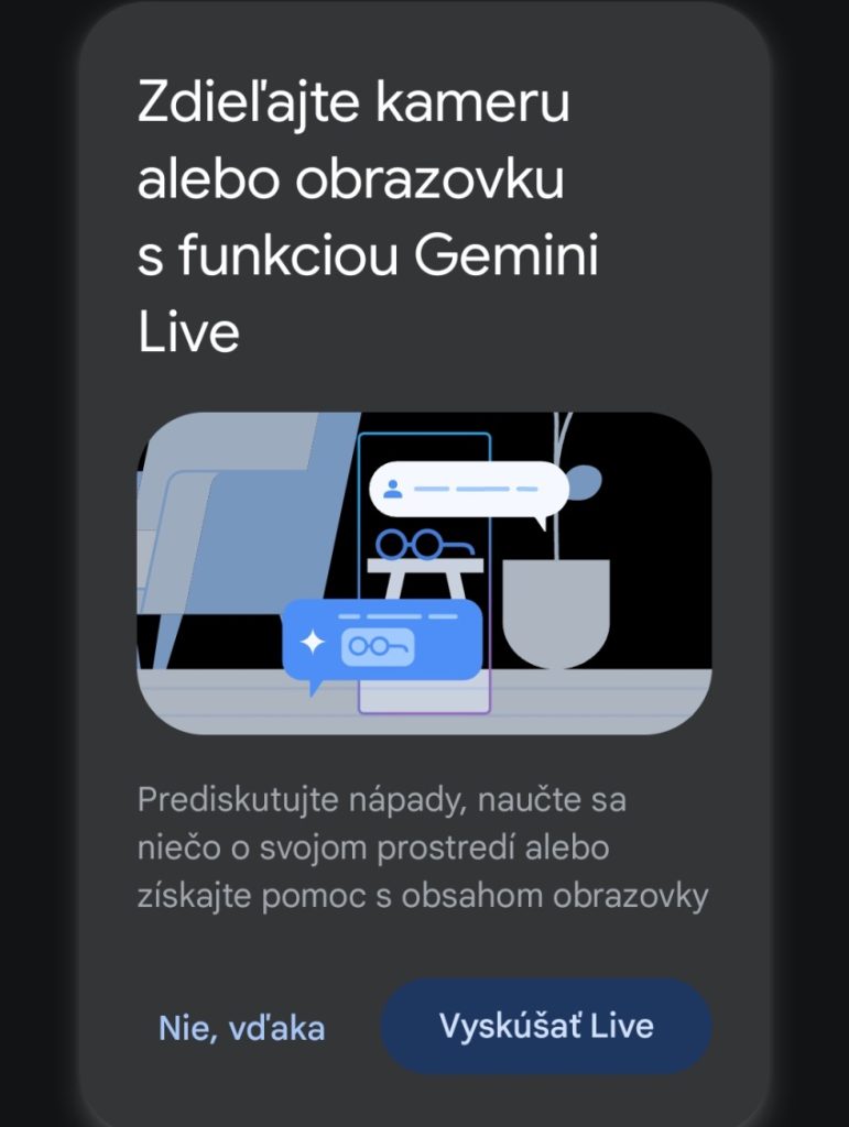 To je režim Live, ktorý vás môže počúvať a sledovať obrazovku. Napriek niekoľkým pokusom asistent upozornil, že obrazovka je čierna a treba ukázať niečo iné. Čierna nebola ale nefungovalo prepojenie fotoaparátu.