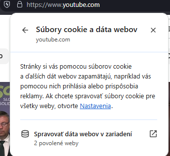 Z vlastných skúseností ale viete, že úprava cookies v nastaveniach prehliadača nebýva na najviditeľnejšom mieste. Lepšie povedané – je poriadne ukrytá v záplave rôznych nastavení a potrebujete sa tam preklikať. Jednoduchšie sa to dá urobiť cez tlačidlo na riadku so zobrazenou adresou. Takto môžete upravovať povolenia stránok a cookies len pre aktuálne zobrazený web, nie hromadne.