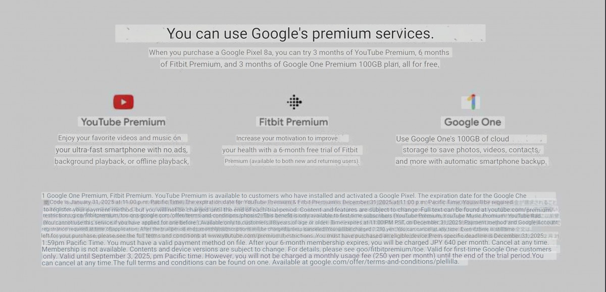 Marketingové materiály zároveň potvrdzujú, že po kúpe Pixel 8a získate tri mesiace YouTube Premium, šesť mesiacov Fitbit Premium a na tri mesiace 100 GB úložiska v Google One celkom zadarmo.