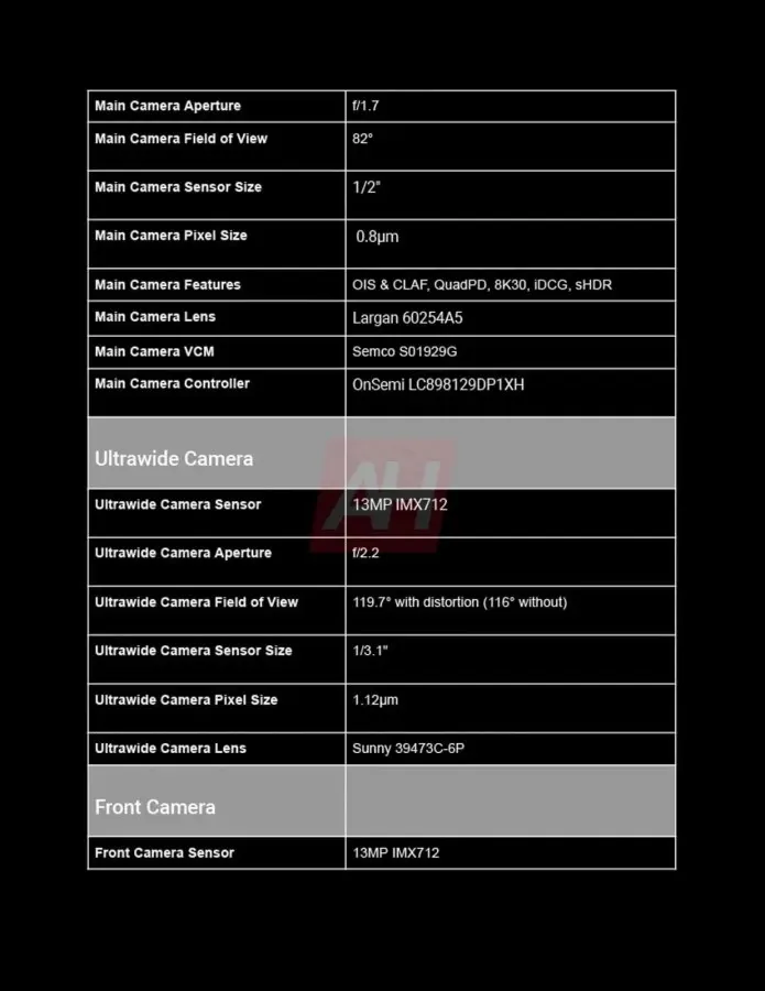 Hlavný fotoaparát bude mať rozlíšenie 48 Mpx f/1.7 a snímač Samsung ISOCELL GN8. Ultraširokouhlý fotoaparát bude mať rozlíšenie 13 Mpx (f/2.2) a snímač Sony IMX712. Rovnaký snímač bude použitý aj pre selfie fotoaparát.
