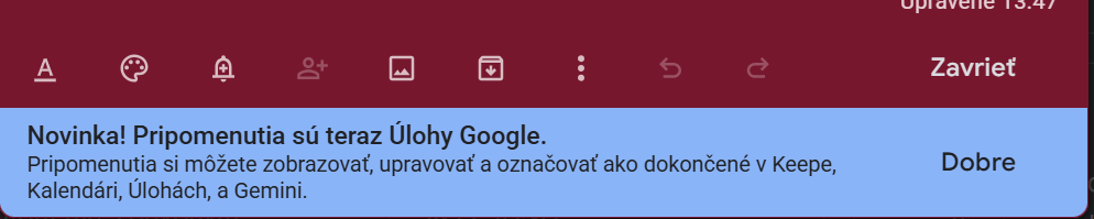 Google upozorňuje na zmenu s pripomienkami a úlohami