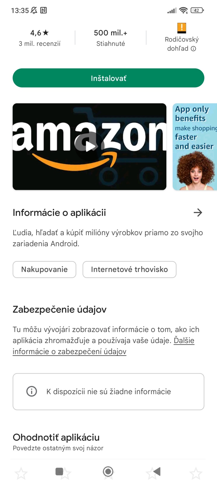 O tom, že ani aktuálny stav nefunguje najlepšie, sa môžete presvedčiť na aplikáciách priamo v obchode. A po príklady netreba chodiť ďaleko. Napríklad taká aplikácia od Amazonu si veľmi nerobí starosti so sekciou Zabezpečenie údajov. Naproti tomu WhatsApp predstavuje ukážku toho, ako má byť táto sekcia vyplnená.