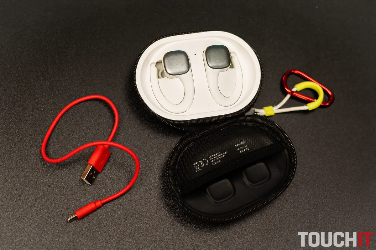 Na puzdre sa nachádza ešte aj konektor nabíjania. Ide o konektor USB-C, pričom kábel na nabíjanie nájdete aj v balení slúchadiel. V praxi to ale znamená, že môžete využiť pokojne aj kábel od vášho smartfónu či iného zariadenia, ak teda ide o USB-C kábel.