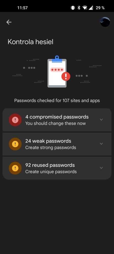 Okrem rýchleho prístupu sa tak viete rýchlo dostať aj ku kontrole hesiel, ktoré sú ohrozené, slabé alebo viackrát použité. Ich zmenu a ďalšie úpravy viete vykonávať v telefóne.