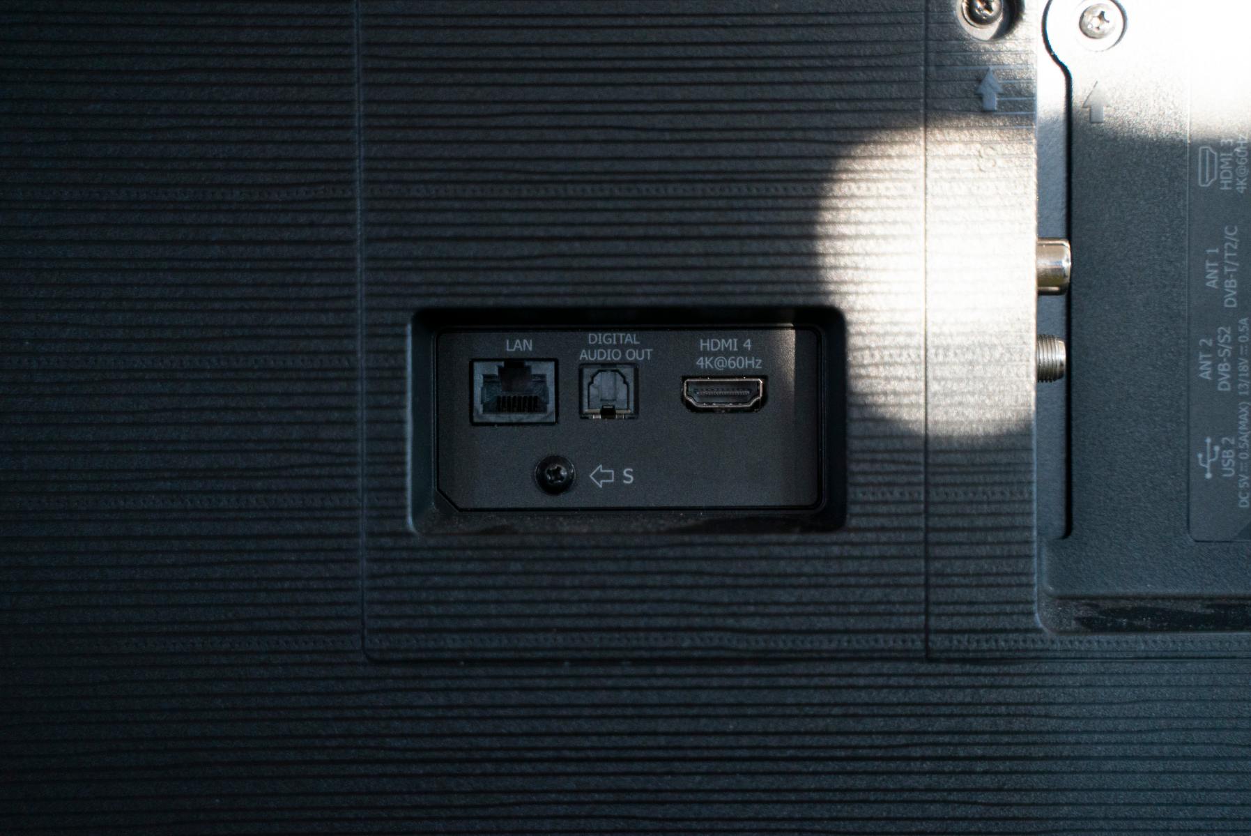 Televízor prichádza s digitálnym tunerom DVB-T2, tiež je tu satelitný tuner DVB-S2 a tiež káblový tuner. Z hľadiska portov sú tu dva porty HDMI 1.4, jeden USB 2.0 a jeden USB 3.0. Rovnako je tu sieťový vstup Ethernet RJ45, podpora je tu pre Wi-Fi a Bluetooth. Z hľadiska rozmerov upozorňujeme na podstavec – treba naň o niečo väčší stolík.