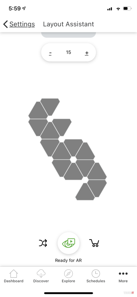 Testovaná zostava sa skladá z 15 trojuholníkových RGB LED panelov (240 x 210 mm), riadiacej jednotky a Rhythm modulu. Inštalácia panelov je za pomoci silných 3M pások. Nainštalovať ich môžete takmer kdekoľvek, bez obmedzení, len treba myslieť na to, že panely sa lepia a niektoré povrchy nemajú dobrú priľnavosť. Jednotlivé trojuholníky sa prepájajú dodávanými konektormi (technické spoje nevidieť) a môžete ich zložiť do ľubovoľného tvaru alebo podľa dostupných predlôh.