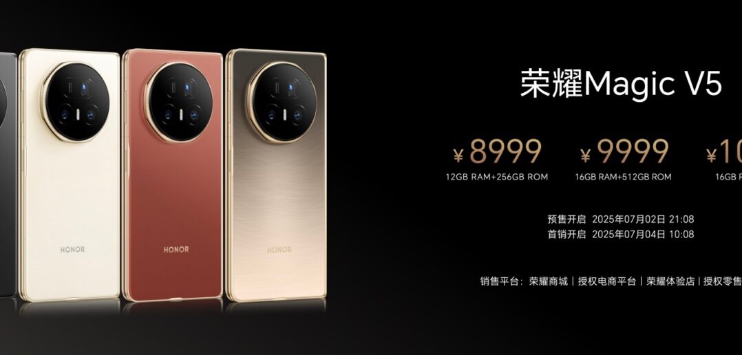 HONOR v Číne predstavil skladací smartfón novej generácie – HONOR Magic V5. Cena štartuje na 8999 RMB (12 GB RAM a 256 GB pamäte), v prepočte 1065 eur.
