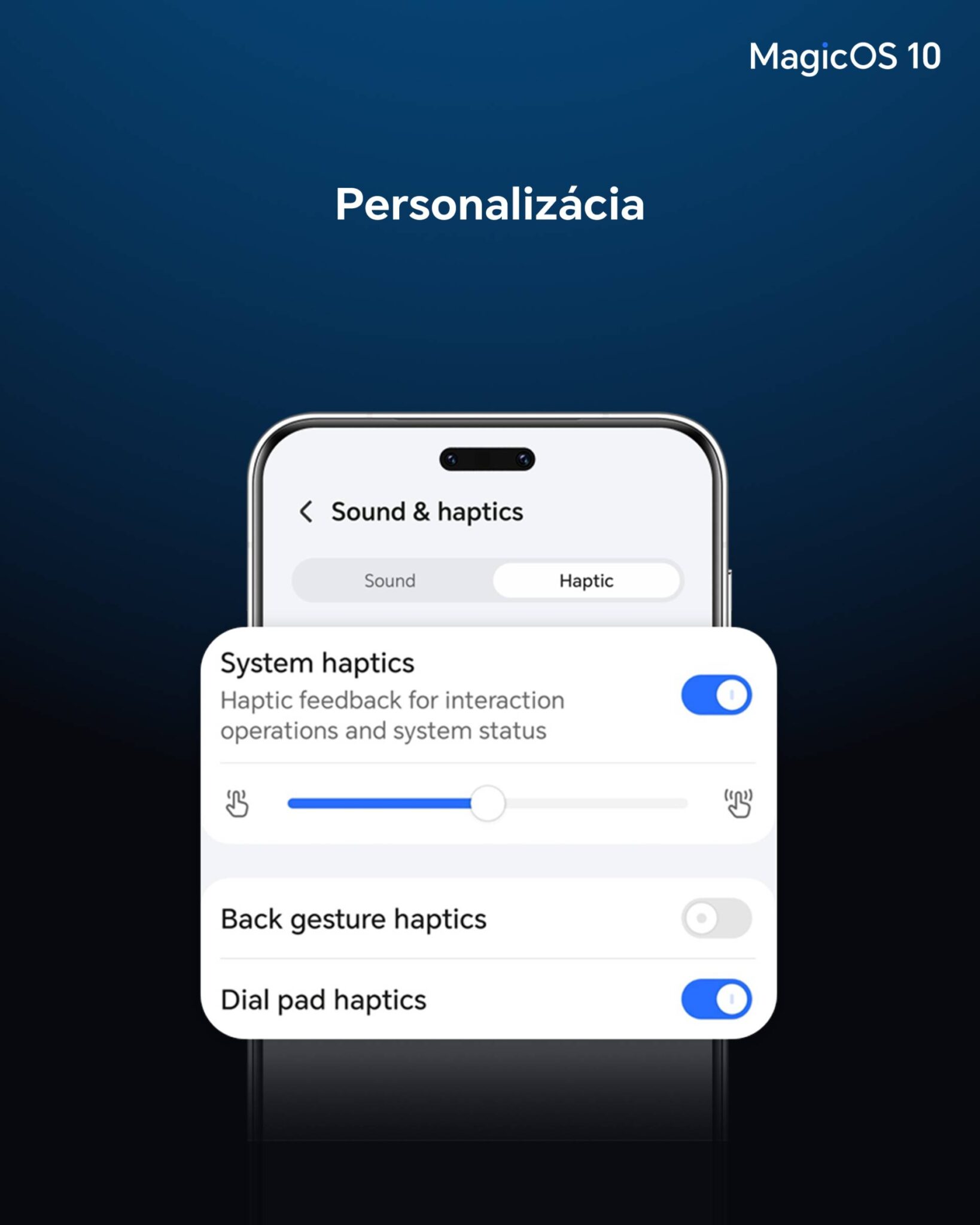 MagicOS 10 prináša aj podporu pre vysokokvalitné Bluetooth audio kodeky, vďaka čomu si užijete lepší zvuk so slúchadlami novej generácie. Rozšírené sú aj možnosti personalizácie vzhľadu systému – od farieb, cez správanie rozhrania až po interakcie s notifikačnými prvkami.