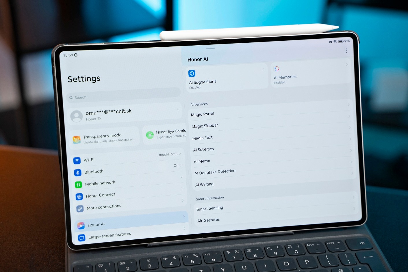 Samozrejme, tablet je vybavený umelou inteligenciou. K dispozícii sú funkcie ako Magic Portal, AI writing, preklad filmov formou titulkov a pod. Samozerjme môžete využiť Gemini.