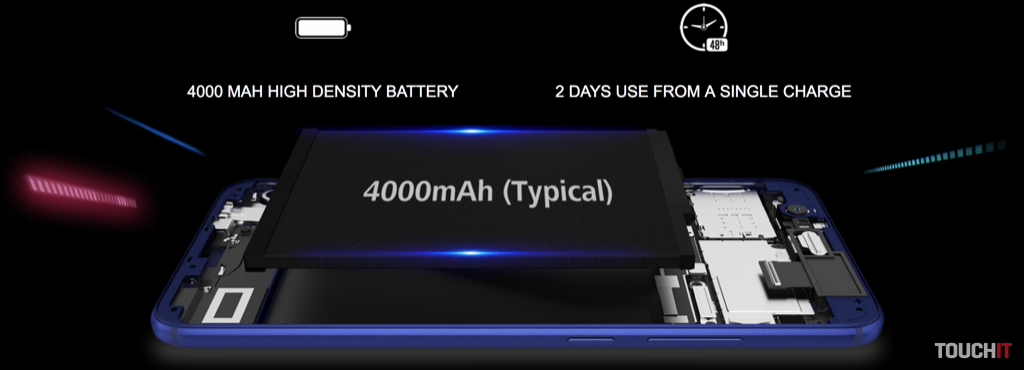 Veľkému telefónu patrí veľká batéria. O tú núdza nebude, novinka má batériu s kapacitou 4000 mAh a podporou Smartpower 5.0. To je systém energetickej správy batérie, ktorý zvyšuje jej výdrž. Výdrž udávaná výrobcom jeň: 1.44 dňa náročného používania, 2 dni bežného používania, 18 hodín prehrávania videa alebo 108 hodín prehrávania hudby.