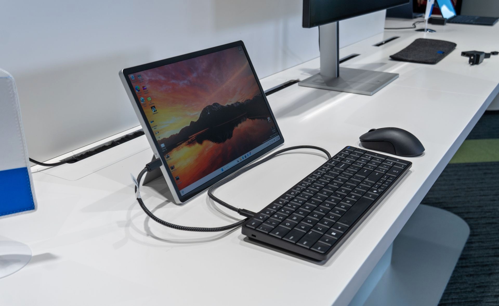 Celý systém EliteBoard G1a má hmotnosť približne 676 gramov a rozmery sú podobné bežnej klávesnici. Napriek tomu ide o plnohodnotný pracovný nástroj. Stačí jeden USB-C kábel pripojený k dokovaciemu monitoru a máte napájanie, obraz aj dáta. Tento prístup reflektuje realitu súčasných kancelárií, kde veľa ľudí síce používa notebooky, no väčšinu času pracuje pri stole s externým monitorom. Prenos EliteBoard G1a je však oveľa pohodlnejší, doba jeho štartu je kratšia ako pri klasickom notebooku.