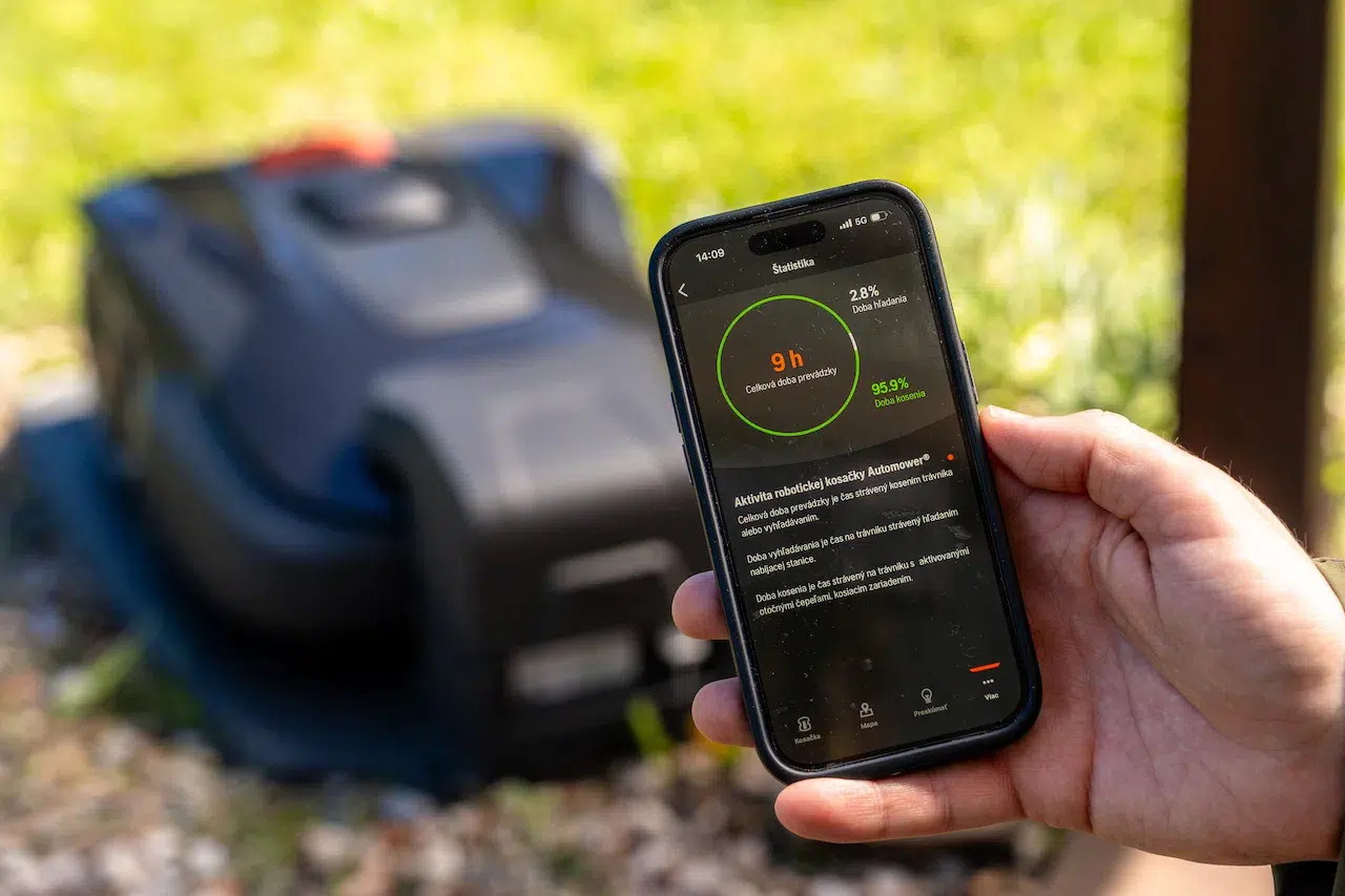 V mobilnej aplikácii Automower Connect, ktorá je dostupná v slovenčine, si môžete aktivovať viacero funkcií a nastavení. Napríklad prispôsobenie dĺžky kosenia podľa toho, aké bolo počasie počas posledných dní. To znamená, že v období rýchleho rastu trávy pracuje kosačka dlhšie. K dispozícii je aj režim špirálového kosenia pre hustejšie porasty.