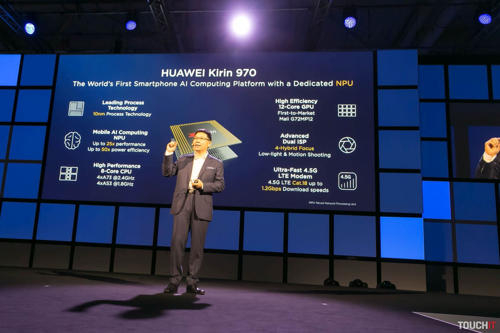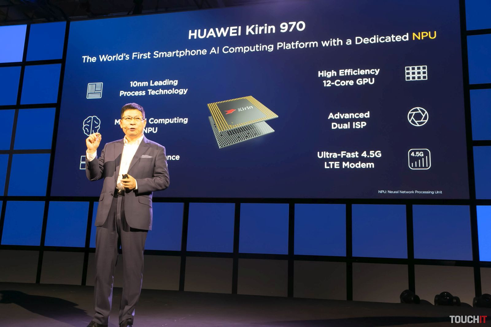 , riaditeľ mobilnej divízie spoločnosti Huawei, dnes na veľtrhu IFA 2017 predstavil procesor Kirin 970. Podľa jeho slov ide o prvý procesor so zabudovanou umelou inteligenciou. Procesor je vyrábaný 10nm výrobným procesom a obsahuje 5,5 miliardy tranzistorov, čo je o 2,5 miliardy viac ako Snapdragon 835 a jeho dôležitou súčasťou je neurónová procesorová jednotka NPU (Neural Processing Unit). V porovnaní s konkurenciou sa telefóny s Kirinom 970 nebudú musieť pripájať do cloudu, aby využili potenciál AI, nakoľko všetky výpočty budú prebiehať priamo v zariadení.