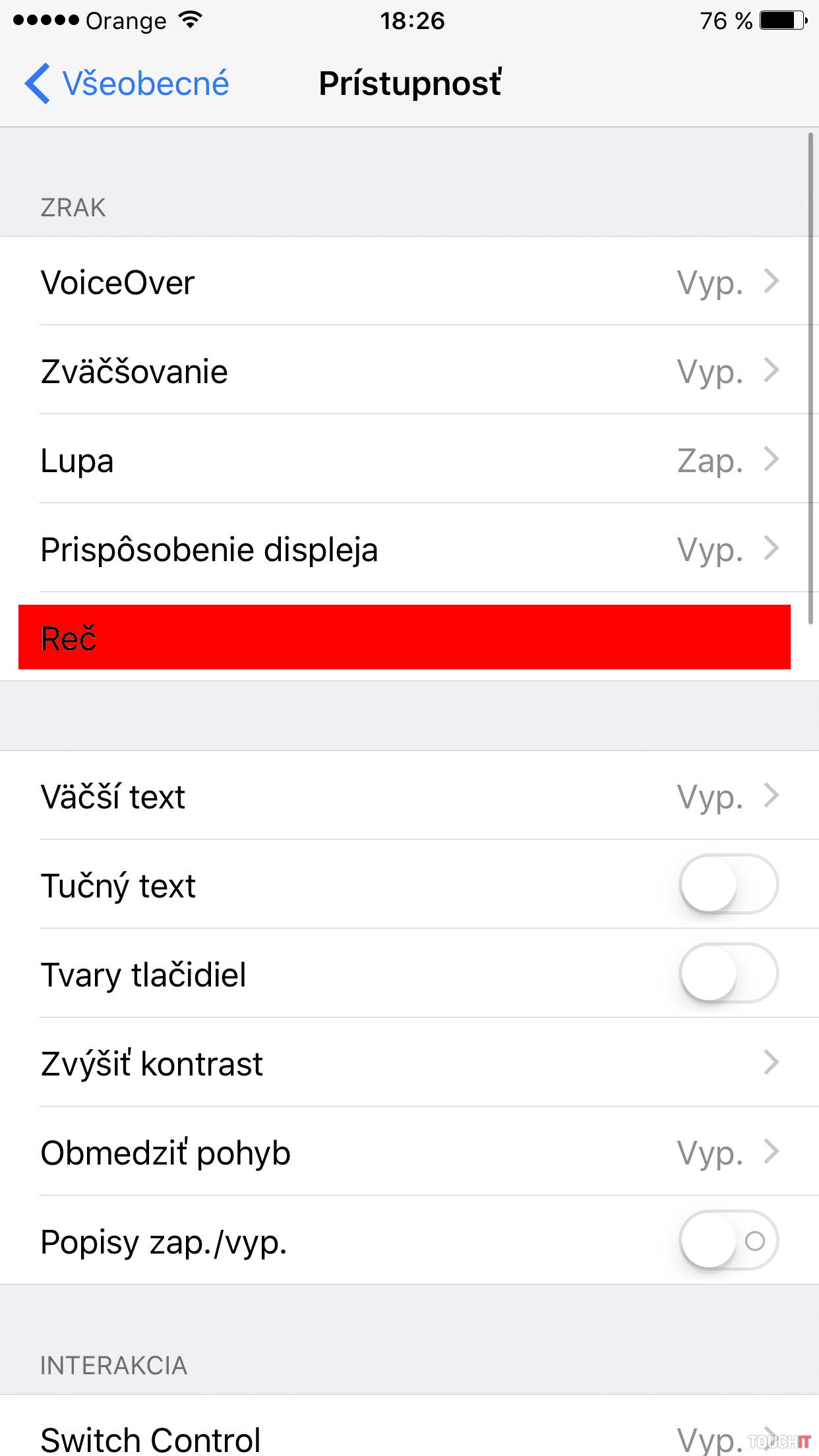Čítanie vami požadovaného textu aktivujete dlhým podržaním prsta na obrazovke s daným textom, kde sa zobrazí klasický výber – kopírovať > označiť > a pod. Tu však pribudne jedna položka – Rozprávať. Následne stačí ohraničiť požadovaný text a nechať si ho prerozprávať. Funguje to spoľahlivo a čítanie je zrozumiteľné. Doplnok pre písanie V položke reč sa nachádzajú aj nastavenia pre písanie, kde môžete aktivovať automatické prerozprávanie každého písaného slova alebo jednotlivých písmen. Ďalej je možné aktivovať > prerozprávanie auto-opráv textu, nápovedy znakov a čítanie predikcií. Tieto funkcie nie sú pre každého použiteľné, ale veríme, že niektorí používatelia by to mohli využiť, resp. by im to mohlo pomôcť. TIP – ako rýchlo písať s presnou diakritikou Ak často na iPhone píšete, vyskúšajte zadávanie textov hlasom. Táto funkcia funguje excelentne, pričom veľmi rýchlo zadáte (nadiktujete) akýkoľvek text aj s diakritikou. Aktivácia je stlačením tlačidla s ikonou mikrofónu na klávesnici. Následne už diktujete a iPhone zadáva text. Prečítajte si aj: https://touchit.sk/recenzia-iphone-7-stale-najlepsi/75263Podobné články