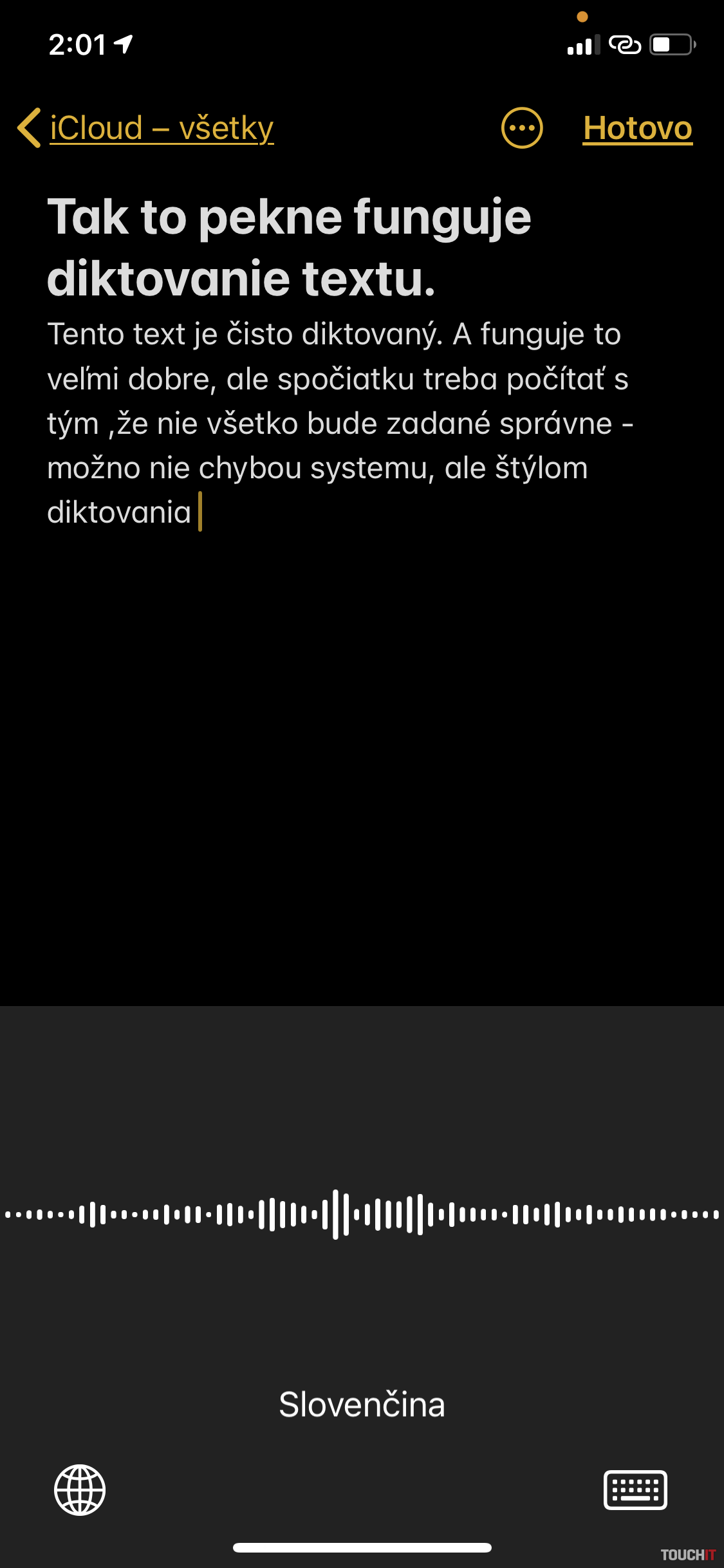 TIP:Ak si často zapisujete poznámky a nápady do telefónu, tak diktovanie je tým najefektívnejším vyjadrením aktuálnej myšlienky – písanie je v danej chvíli zdĺhavé. Prečítajte si aj: https://touchit.sk/apple-predstavil-novy-ios-14-vsetky-podstatne-novinky-na-jednom-mieste/296701
