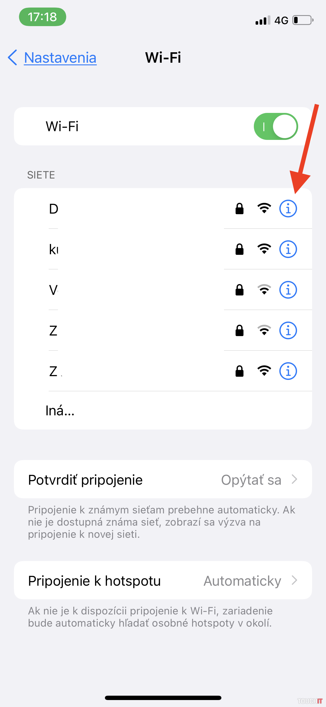 - Klepnite na tlačidlo informácií „i“ vedľa siete.
