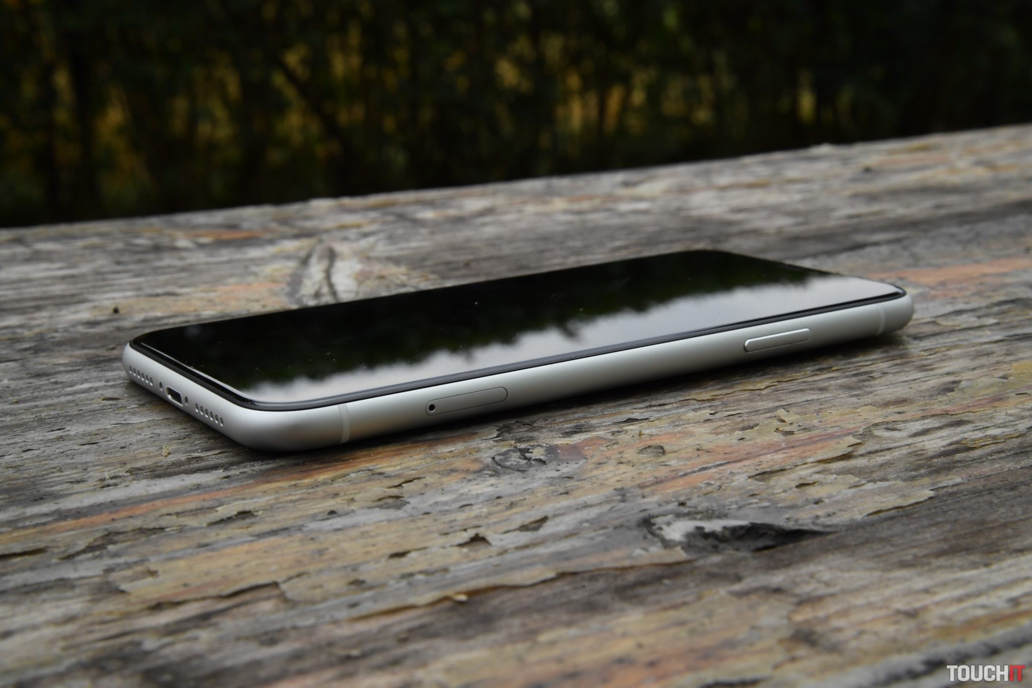 Na test máme iPhone XR v bielej farbe, pričom je celkom dostupných 6 farebných prevedení. Subjektívne mu najviac sekne červená. Biela ho zbytočne rozširuje, čo XR vôbec nepotrebuje, nakoľko je už beztak o 0,6 mm širší oproti súrodencom. Zvyknúť si bude treba aj na jeden, ale podstatne vystupujúci snímač – pupák :). Puzdro bude správnou voľbou.